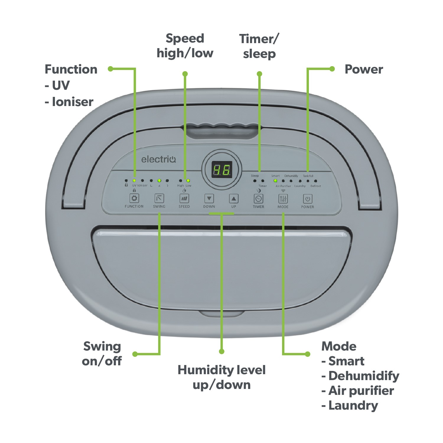 - Digital humidistat with backlight LCD display showing current room humidity also colour led light green, orange and red for quick and effortless humidity level check