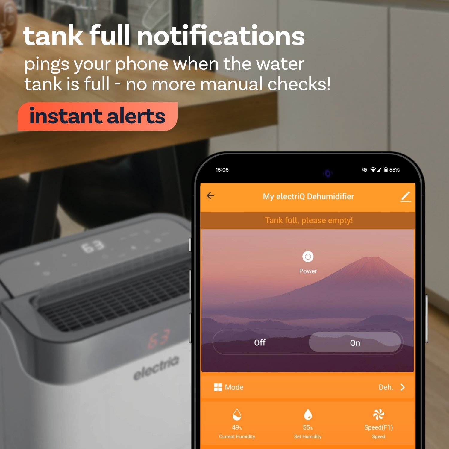 As this is a compressor-based dehumidifier, its moisture extraction efficiency reduces significantly when temperatures fall below 15 °C.