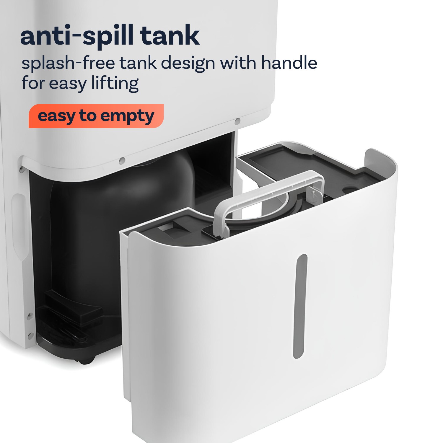 - Large antibacterial/spill-proof tank with permanent drainage option; antibacterial coating stops mould growth