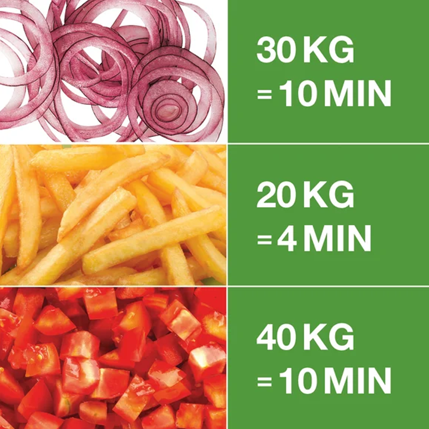 - High Volume Throughput: Processes up to 150kg of ingredients per hour, easily handling 50 to 300 covers per service.