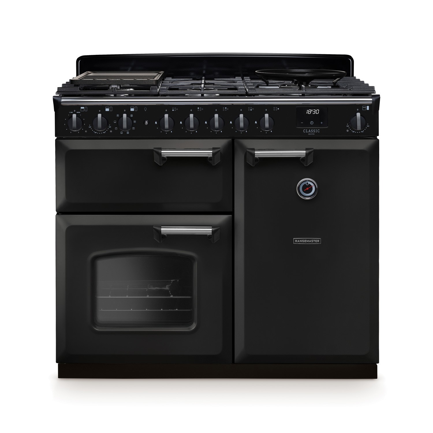 Rangemaster Classic Deluxe 100cm Dual Fuel Range Cooker - Charcoal Black & Chrome