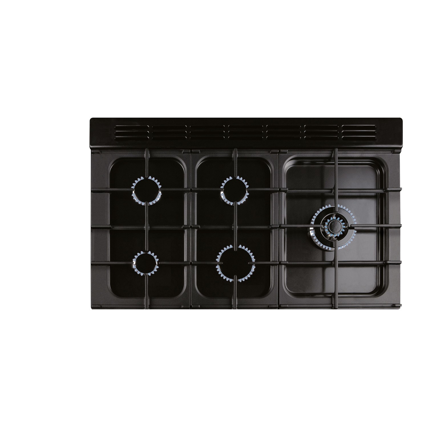 Deluxe 5 burner gas hob with half-smooth half-grooved griddle and wok cradle