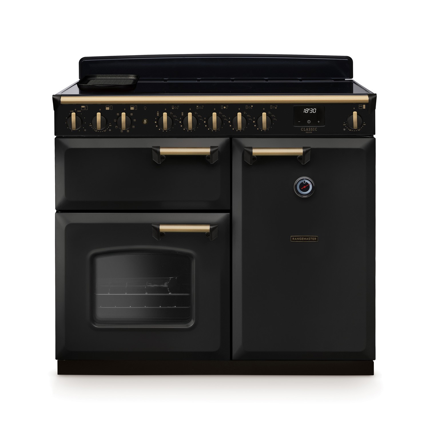 Rangemaster Classic Deluxe 100cm Induction Range Cooker - Charcoal Black & Brass