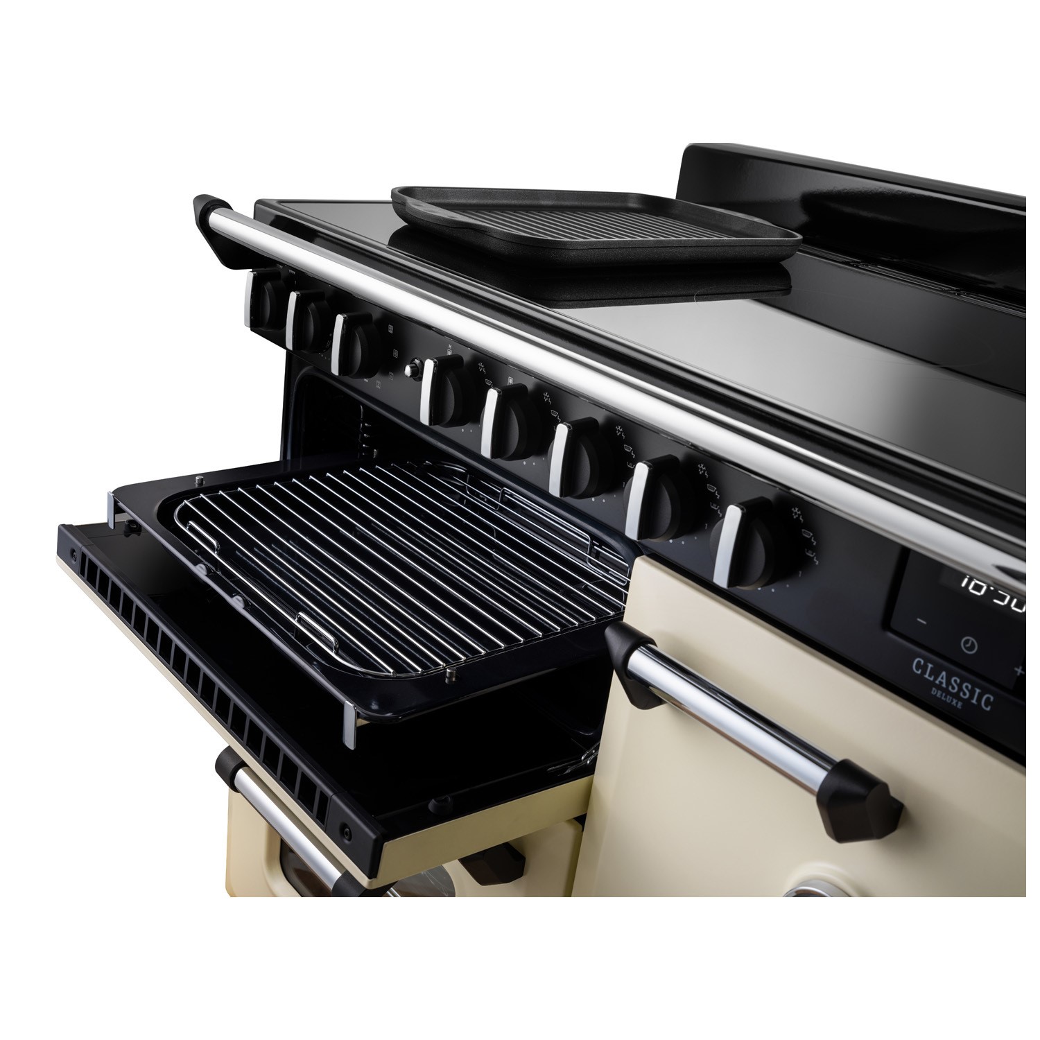 Indulge in timeless elegance with the Classic Deluxe range cooker. Preserving the charm of the Classic bakers-style windows and bevelled doors, the Classic Deluxe offers an enhanced cooking experience – from the multifunction oven and Handyrack to the telescopic shelves. A choice of slow cooker or proving drawer for the 110cm model provides more flexibility and functionality to cooks and bakers alike. Personalise the characterful design with a choice of eight colours, including matt Charcoal Black and pastel Heather, as well as two complementary trim options: Chrome and Antique Brass.