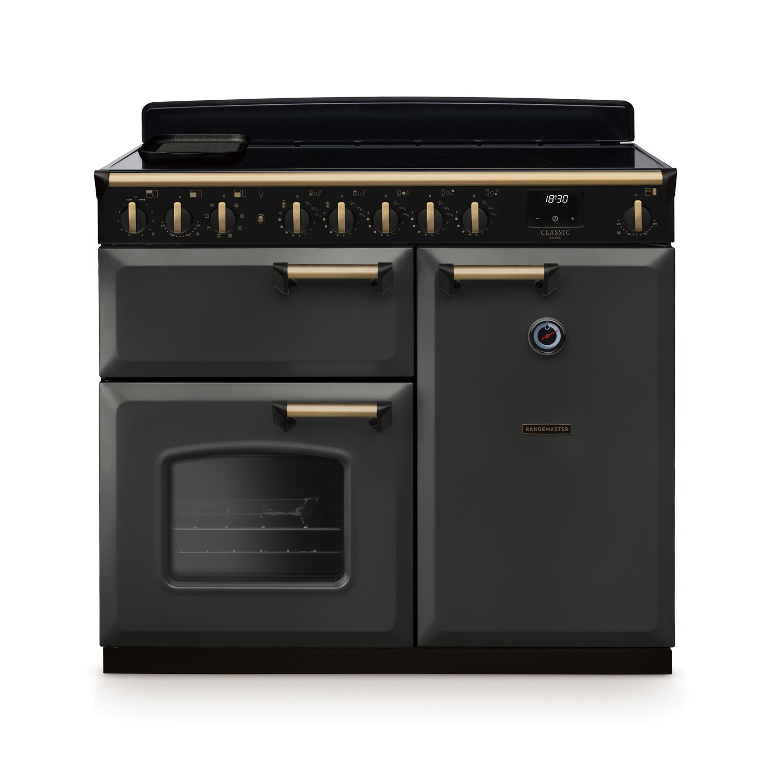 Rangemaster Classic Deluxe 100cm Induction Range Cooker - Slate & Brass