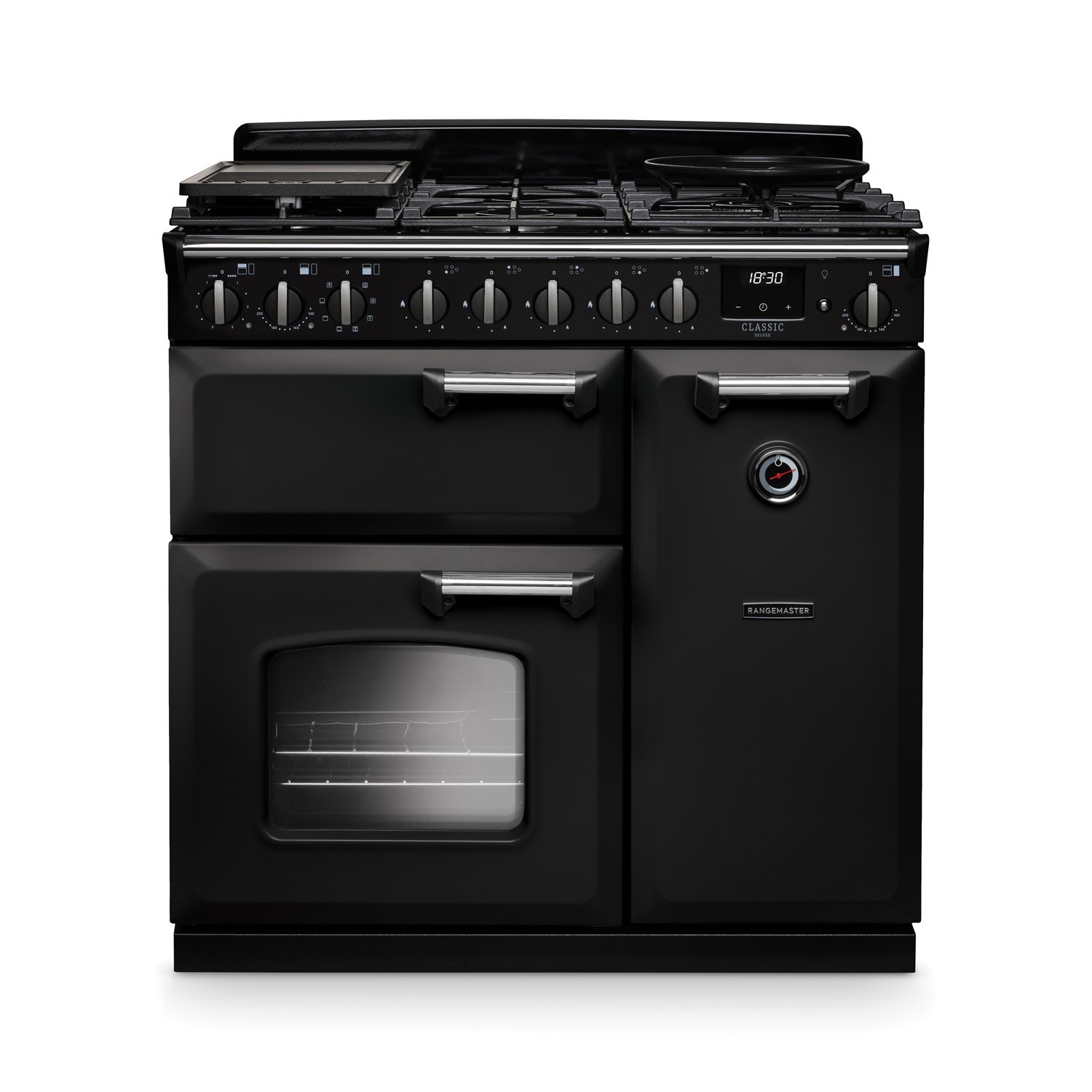 Rangemaster Classic Deluxe 90cm Dual Fuel Range Cooker - Charcoal Black & Chrome
