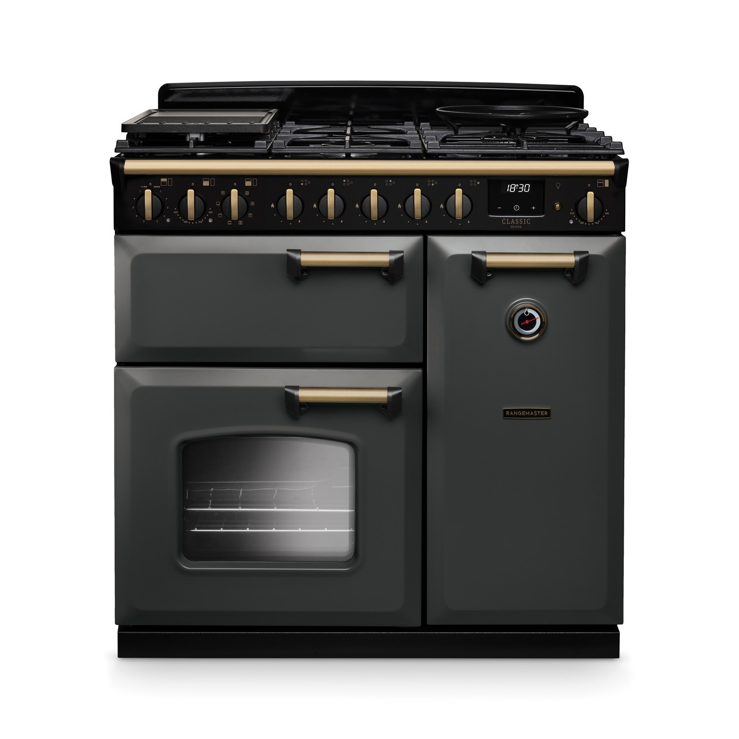 Rangemaster Classic Deluxe 90cm Dual Fuel Range Cooker - Slate & Brass