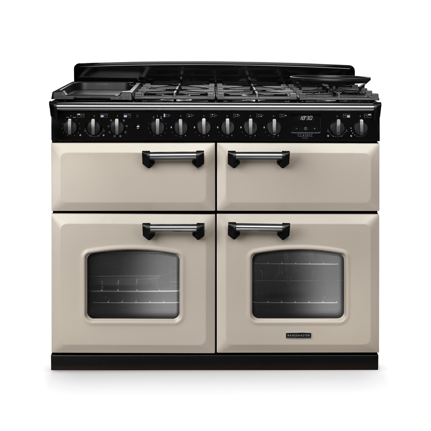 Rangemaster Classic Deluxe 110cm Base Cavity Dual Fuel Range Cooker - Pale Cream & Chrome