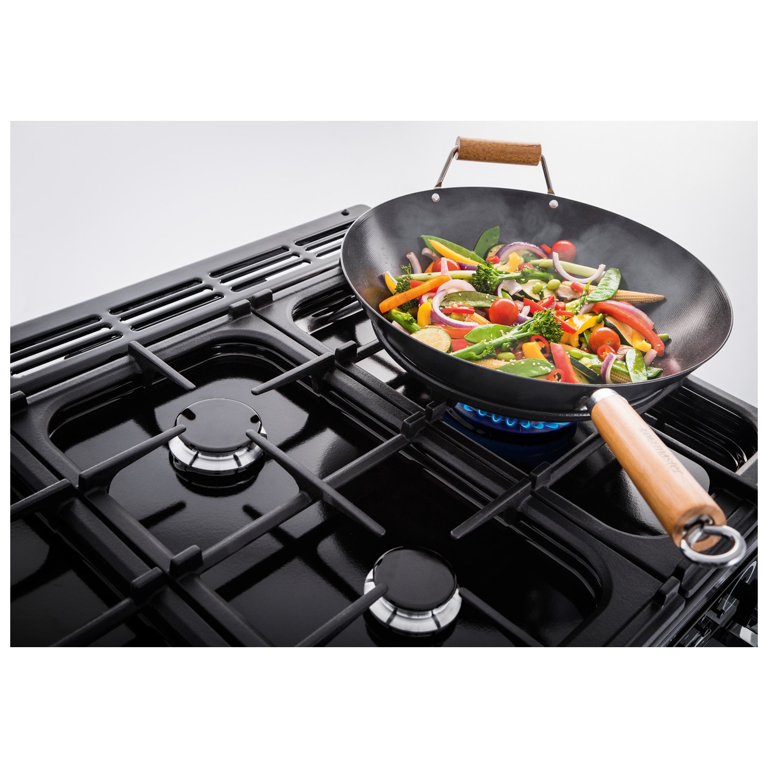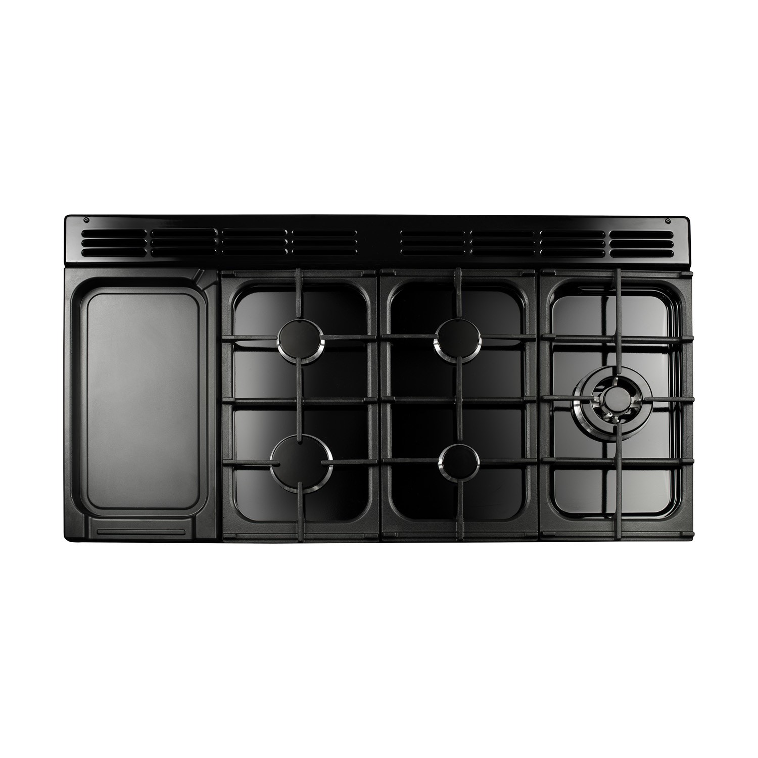 Deluxe 5 burner gas hob with half-smooth half-grooved griddle and wok cradle