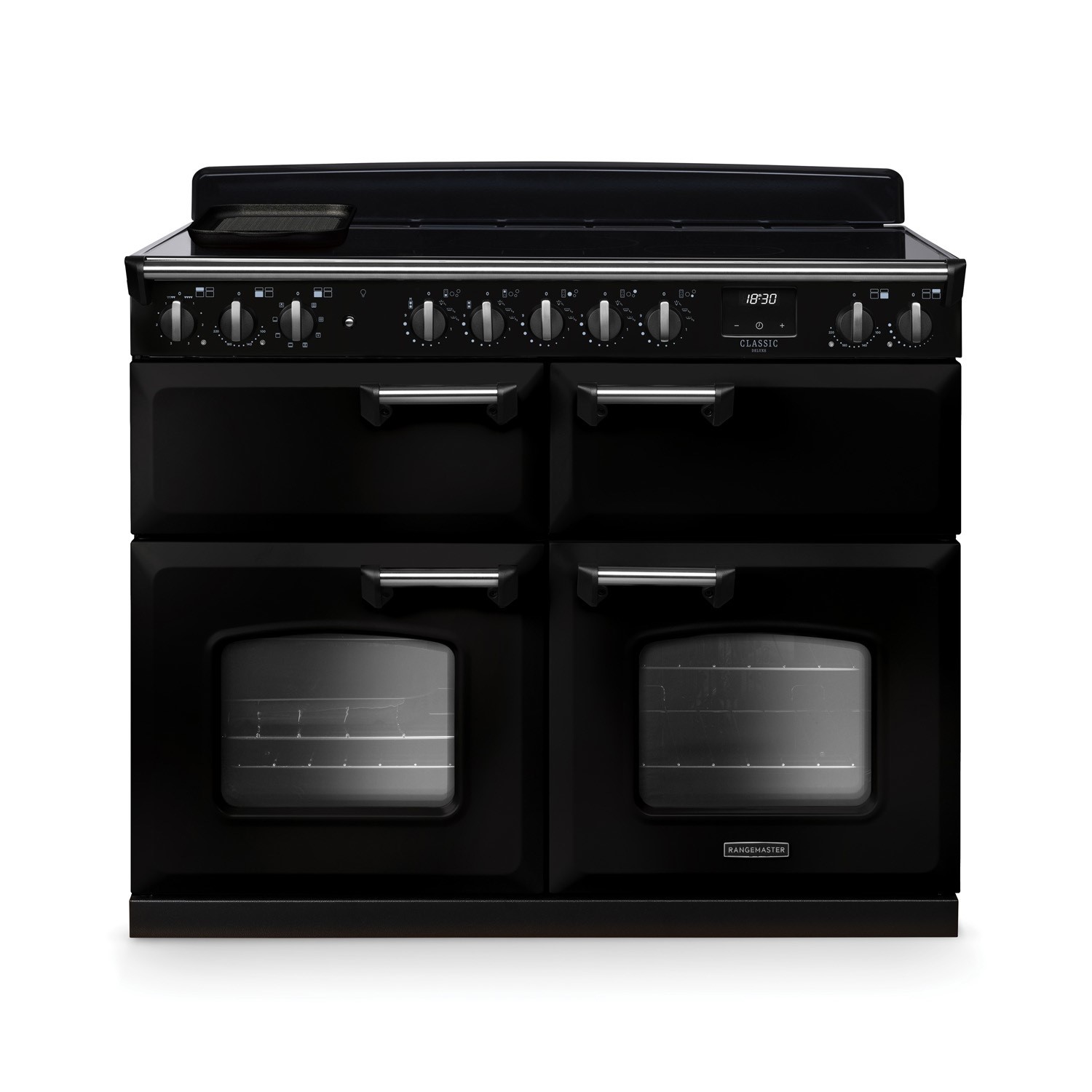Rangemaster Classic Deluxe 110cm Base Cavity Induction Range Cooker - Gloss Black & Chrome