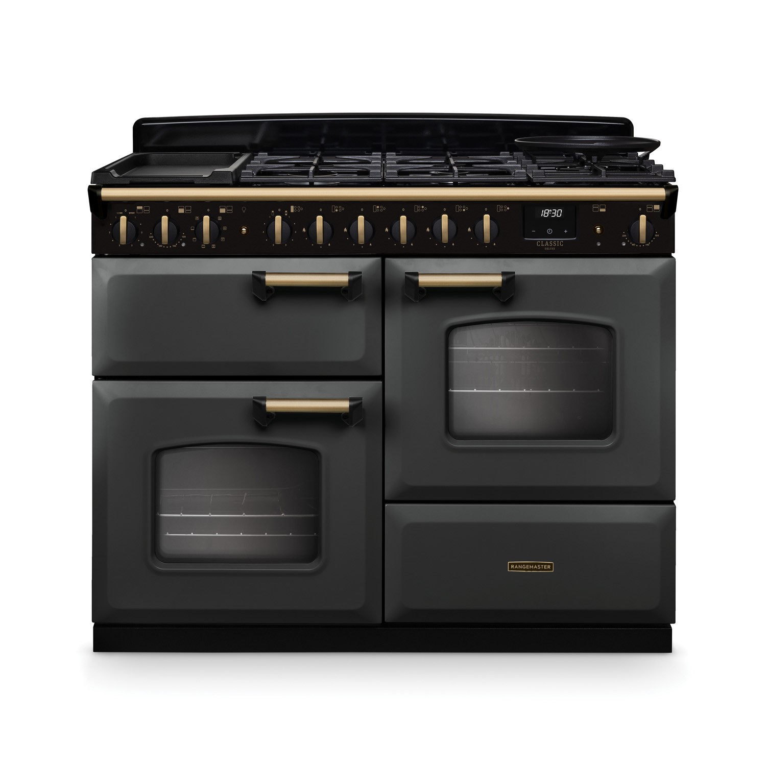 Rangemaster Classic Deluxe 110cm Dual Fuel Range Cooker - Slate & Brass
