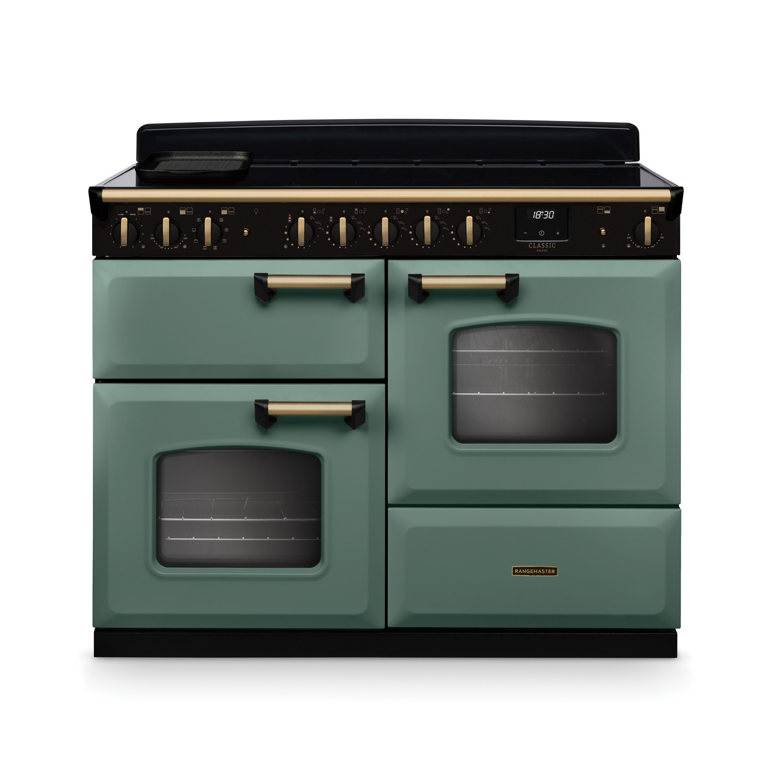 Rangemaster Classic Deluxe 110cm Induction Range Cooker - Mineral Green & Brass