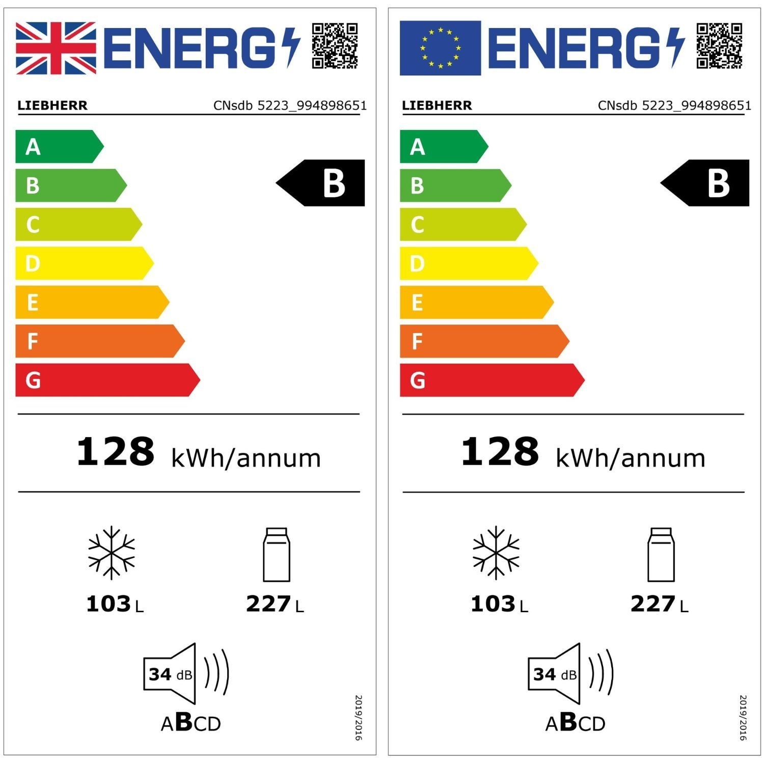 The Liebherr CNsbd 5223 is a modern freestanding fridge-freezer that combines fresh design with everyday practicality. With DuoCooling, the fridge and freezer maintain separate climates to preserve flavour and texture, while NoFrost technology eliminates defrosting for good. The handy EasyFresh drawer keeps fruit and vegetables at their best, and the EasyTwist Ice maker delivers fresh ice cubes in seconds. Backed by a reassuring 10-year guarantee, this 60cm model is built for reliability, efficiency, and long-lasting freshness in any busy kitchen.