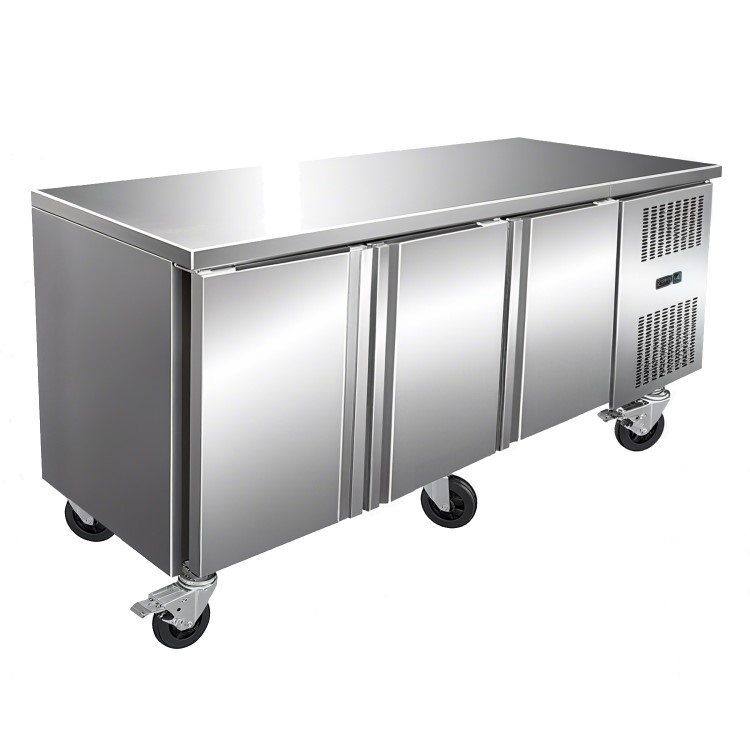 Culinox GN3100TN - 3 Door Counter Fridge With Castors - 700mm Deep - GN Compatible - Ventilated Cooling - 379 Ltr Gross