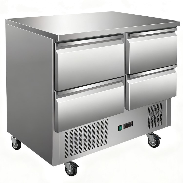 The Culinox S901-4D refrigerated prep counter is designed for efficient chilled storage and food preparation in commercial kitchens. Featuring four GN 1/2 compatible refrigerated drawers and a durable stainless steel worktop, it provides convenient access to ingredients while maximising workspace efficiency.