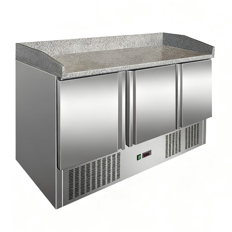 - Solid Granite Worktop: Heavy-duty granite surface ideal for pizza preparation and other chilled prep work.