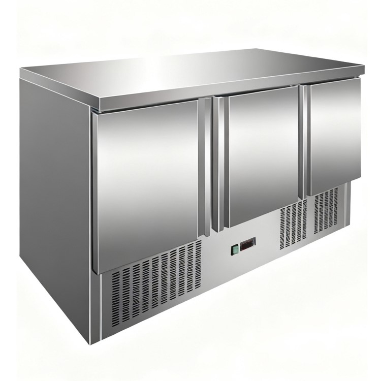 Culinox CNX-S903SSTOP - Premium 3 Door Prep Counter Fridge - Solid Top - 368 Ltr