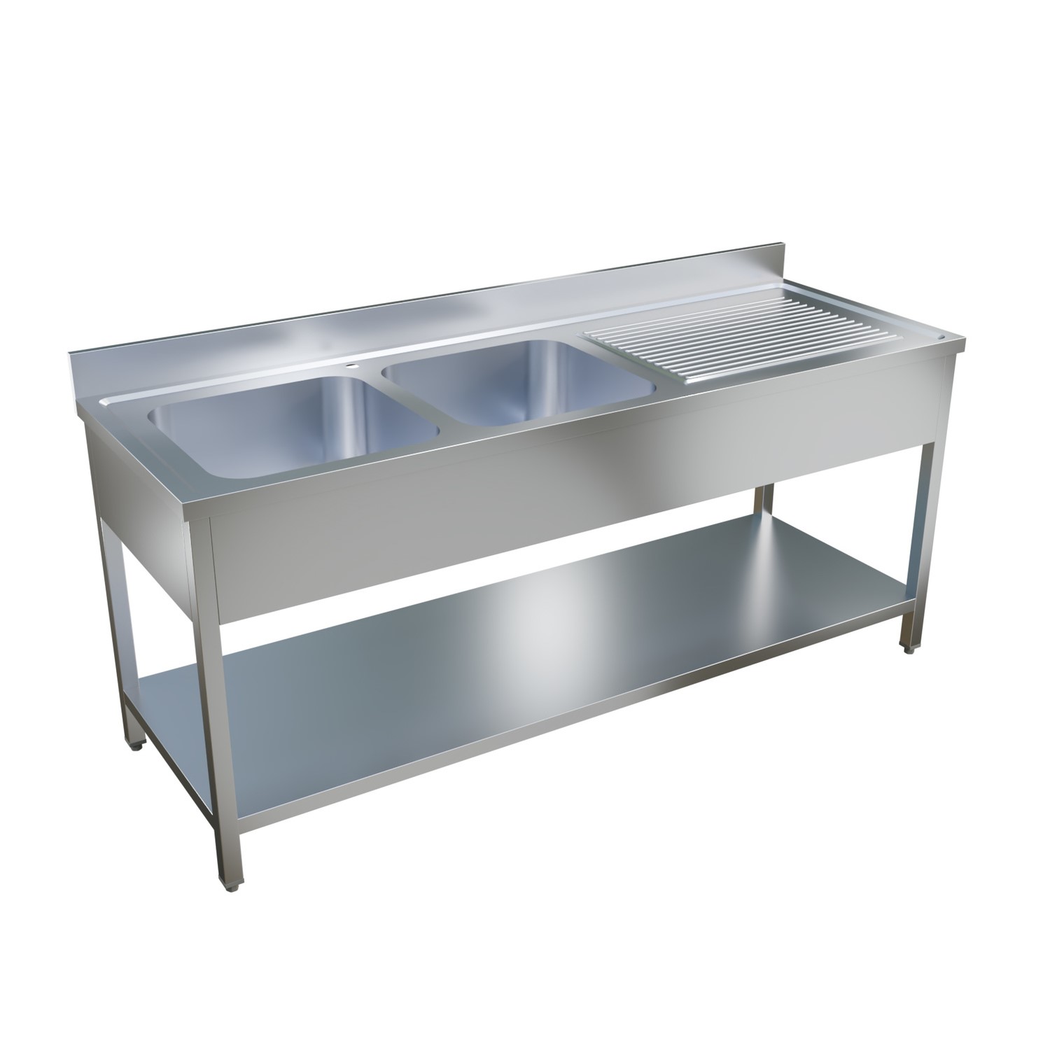 The Culinox PRO 1400mm Wide Double Bowl Stainless Steel Sink with Right-Hand Drainer provides a durable and hygienic solution for professional kitchens. Its 100mm rear upstand helps protect walls from splashes while the stainless steel construction supports daily commercial use.