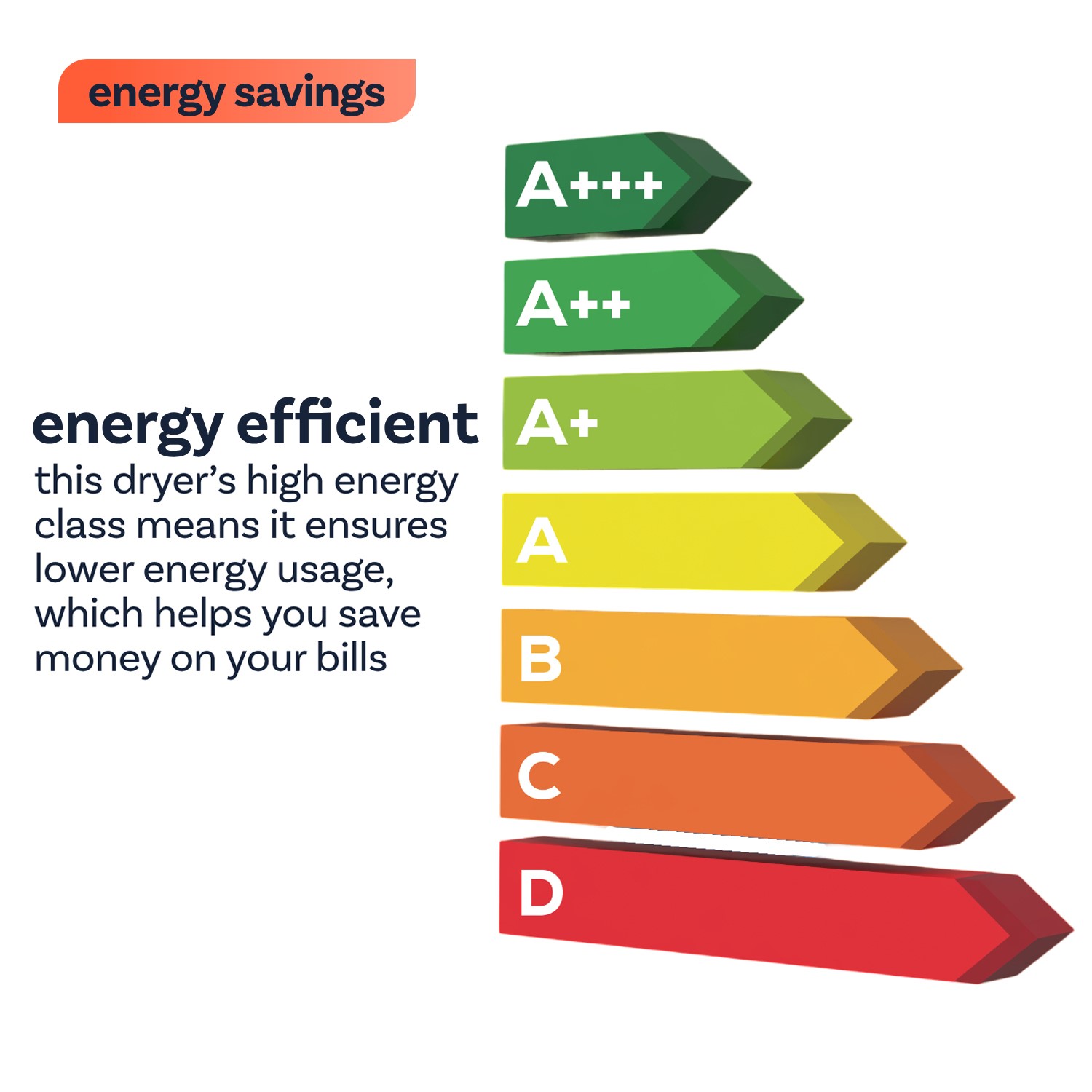 Make laundry day simpler with the Candy Smart Pro CROEH9A3TBEB80/N heat pump tumble dryer. Its large 9kg drum capacity means you can dry more clothes at once, perfect for family loads or bedding. Thanks to its A+++ energy rating and clever heat pump tech, you'll save money on your electricity bills and your clothes will be looked after gently. Control it easily from your phone with the hOn app*, letting you start cycles from anywhere. The app can even suggest the best drying mode for your load with Snap&Dry, and smart sensor drying stops the machine when your clothes are perfectly dry, saving energy and protecting them from heat.