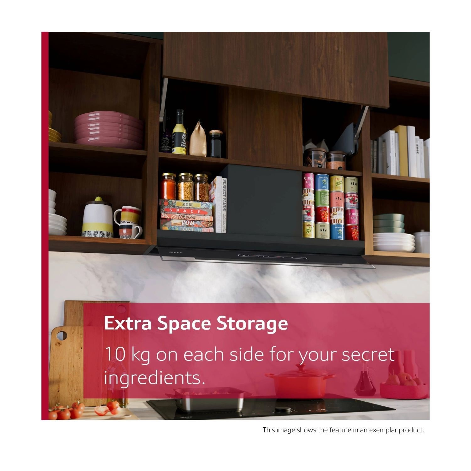 No more sacrificing valuable cabinet space for a hood! Our Integrated Design Hood not only keeps your kitchen air fresh, but it also provides extra storage space. With the innovative T-shaped design, you can store up to 10kg on each side, making it perfect for herbs, cookbooks and other kitchen essentials. It's time to reclaim your kitchen and enjoy the convenience of having everything within reach.