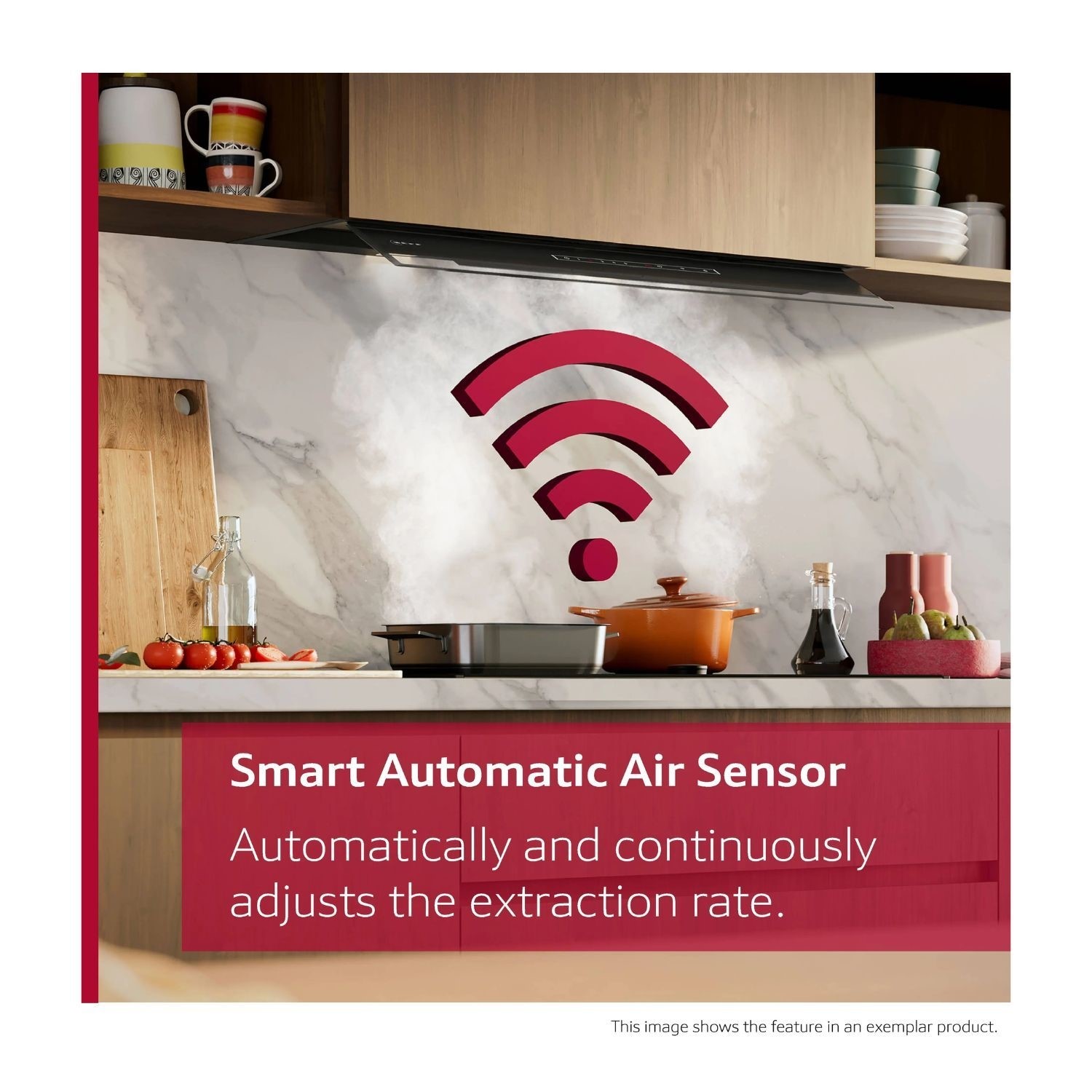 Tired of adjusting the extraction rate manually, but have a matching hob? Let the Smart Automatic Air Sensor take care of it. Based on an intelligent system combining information such as hob power and amount of vapour and odours detected by the air quality sensor, the extraction rate is being automatically adjusted. If you do not have a matching hob, the air quality sensor takes over. It automatically monitors the air quality, adapts the ventilation power level to the amount of vapour and odours and runs until the kitchen air is cleared of all unpleasant odours. And if you want to stay in control, you can also operate the hood manually from the hob.