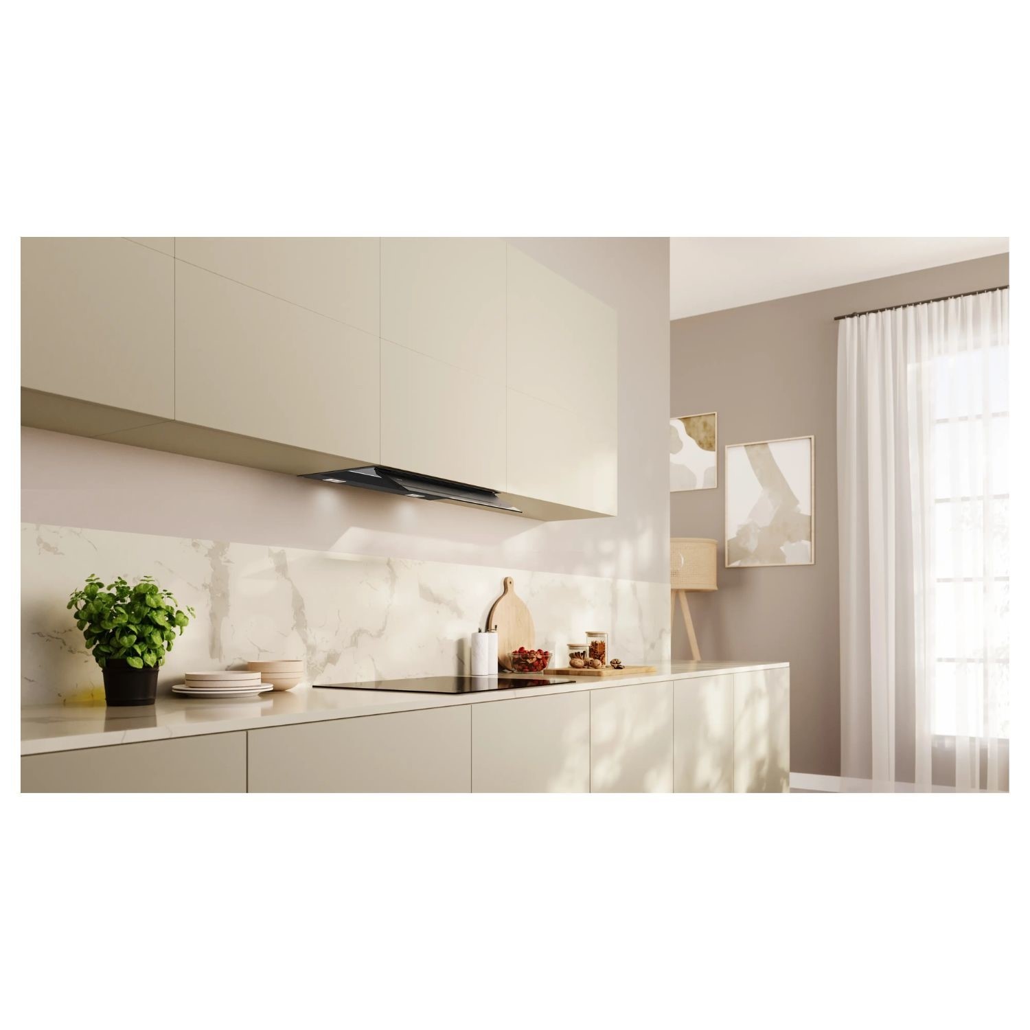 - Flush-fitted installation for a seamless integration in wall cupboards.