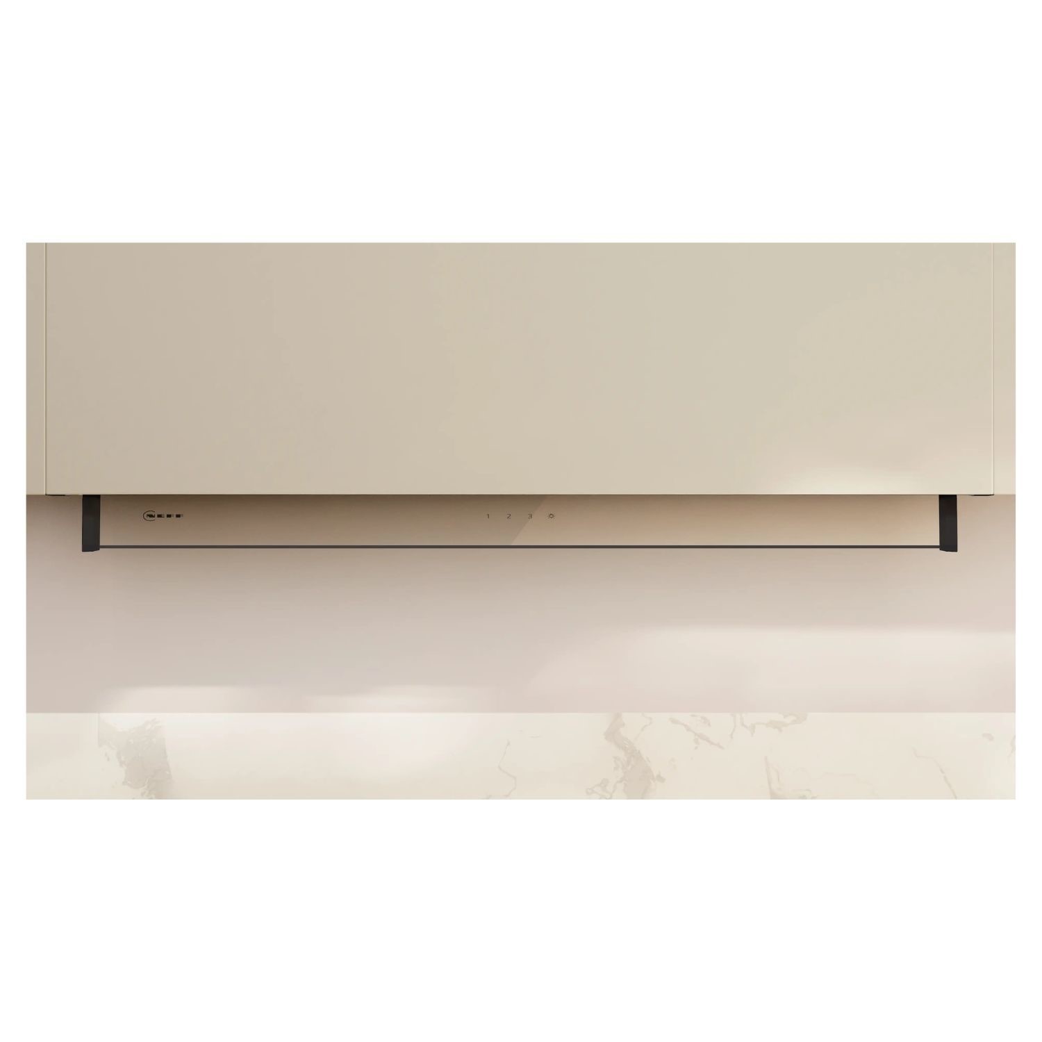 The Integrated Design Hood can be installed by a single person thanks to its well thought-out design, construction and assisting installation aids. It is the perfect replacement for other built-in hoods and offers many different configuration options. With the chimney extension, that can be purchased additionally, you can hide technical detalis such as the exhaust pipe. Thanks to its extensibility you can choose up to a cabinet height of over 90cm. The hood allows individual and flexible design of the cabinet, such as the number of shelves.
