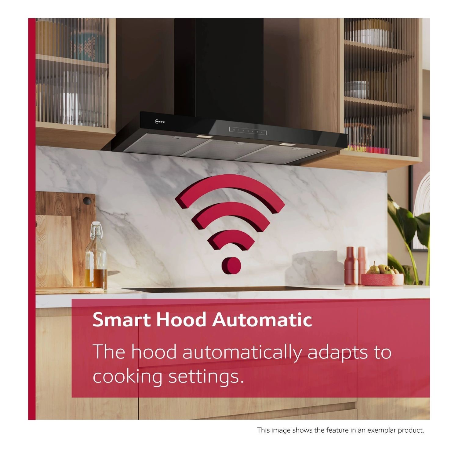 Now you can just focus on your way of cooking. Your hood regulates itself automatically based on an algorithm that adopts to your hob settings while you cook. Once you start cooking, the hood turns on automatically and adjusts the extractor power. Your kitchen is free of odours and vapour and you never have to clean finger prints on the hood. This works with all current N90/N70 induction hobs. For older Home Connect hobs, the hood can be operated from the hob.