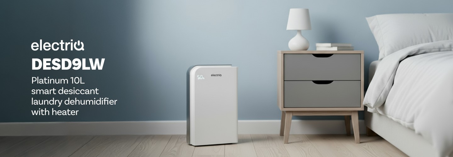 Protect your health and home from the harmful effects of excess humidity with this fast-dry 10L desiccant dehumidifier from electriQ - now at popular request with Wi-Fi Alexa/ Google Assistant voice control and automation. Suitable for flats and homes with up to 6 bedrooms, this powerful yet incredibly energy-efficient dehumidifier provides a cost-effective solution in combating damp, mould and condensation.
