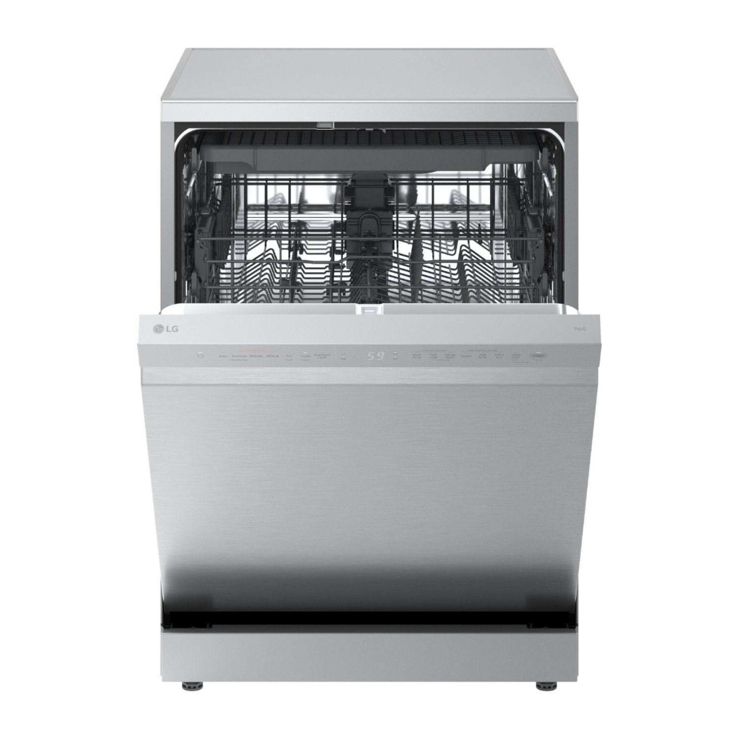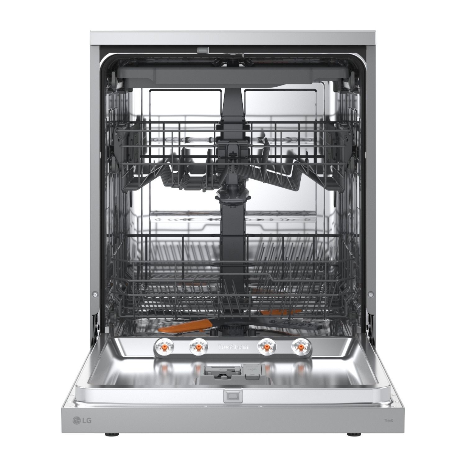 Looking for a top-notch dishwasher that makes cleaning up simple? The LG DF273FVS Full Size Freestanding Dishwasher in silver is a smart choice for any busy home. It holds 14 place settings, so you can easily fit all your dishes after a big family meal. With smart Wi-Fi, you can control it from your phone, making your day a little easier. Plus, its TrueSteam™ and QuadWash™ features work together to get rid of tough food and leave your plates, glasses, and cutlery sparkling clean, with fewer water marks. Need dishes fast? The Turbo Cycle gets them done quickly.