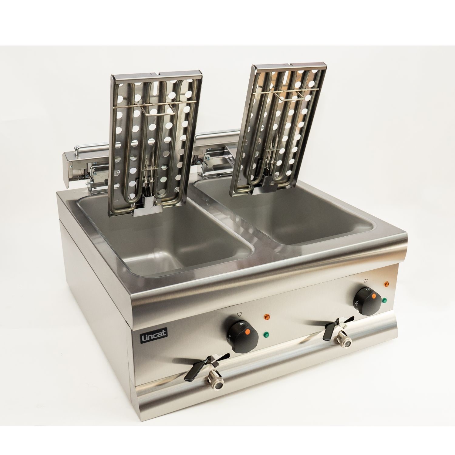 This powerful unit is fitted with two 13A plugs, meaning it can be connected to standard UK sockets without the need for specialist hardwiring. Its compact 600mm width allows it to sit comfortably on most commercial worktops or optional Lincat stands. Each 7.5 Ltr tank is thermostatically controlled between 130°C and 190°C, ensuring consistent results while the fail-safe top temperature cut-out provides total peace of mind for your team.