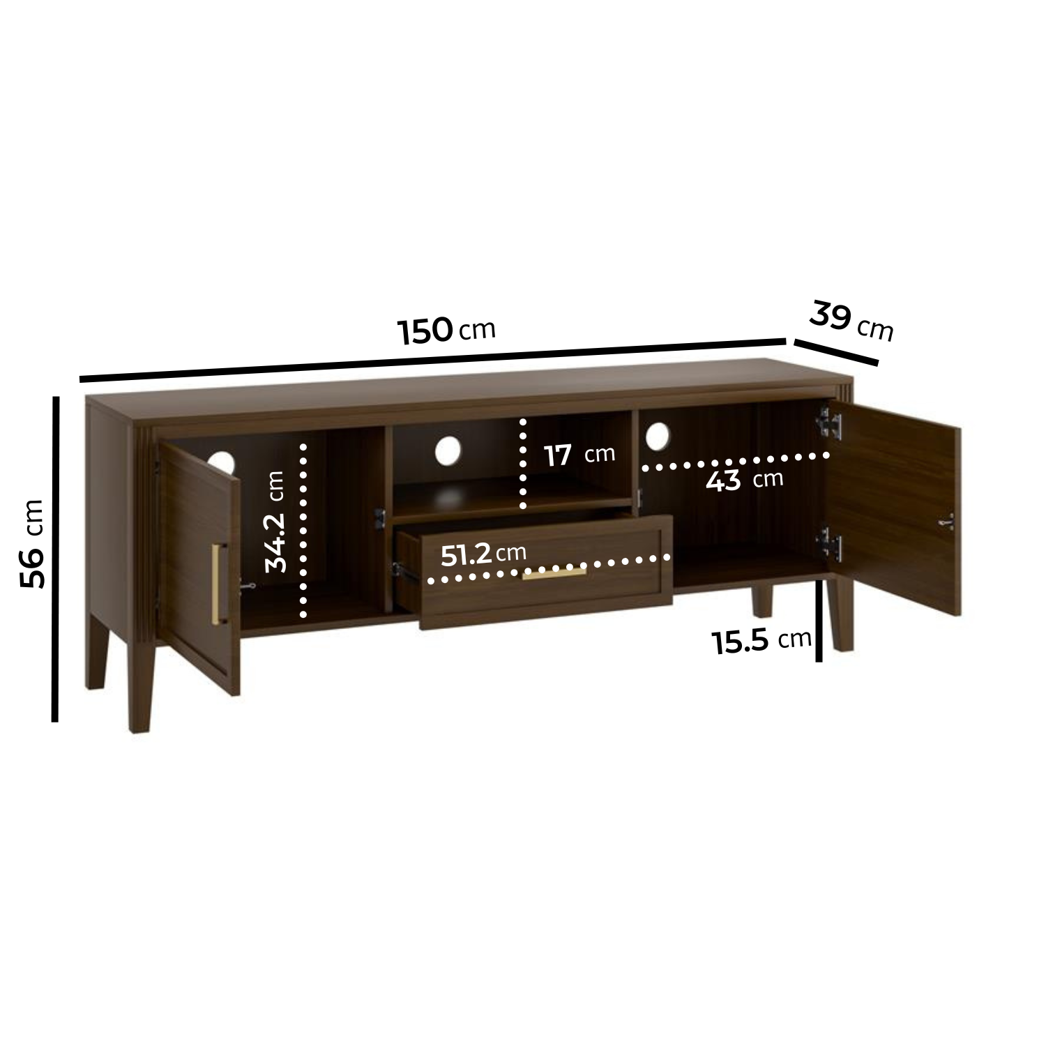 - Dimensions: H56 x W150 x D39 cm