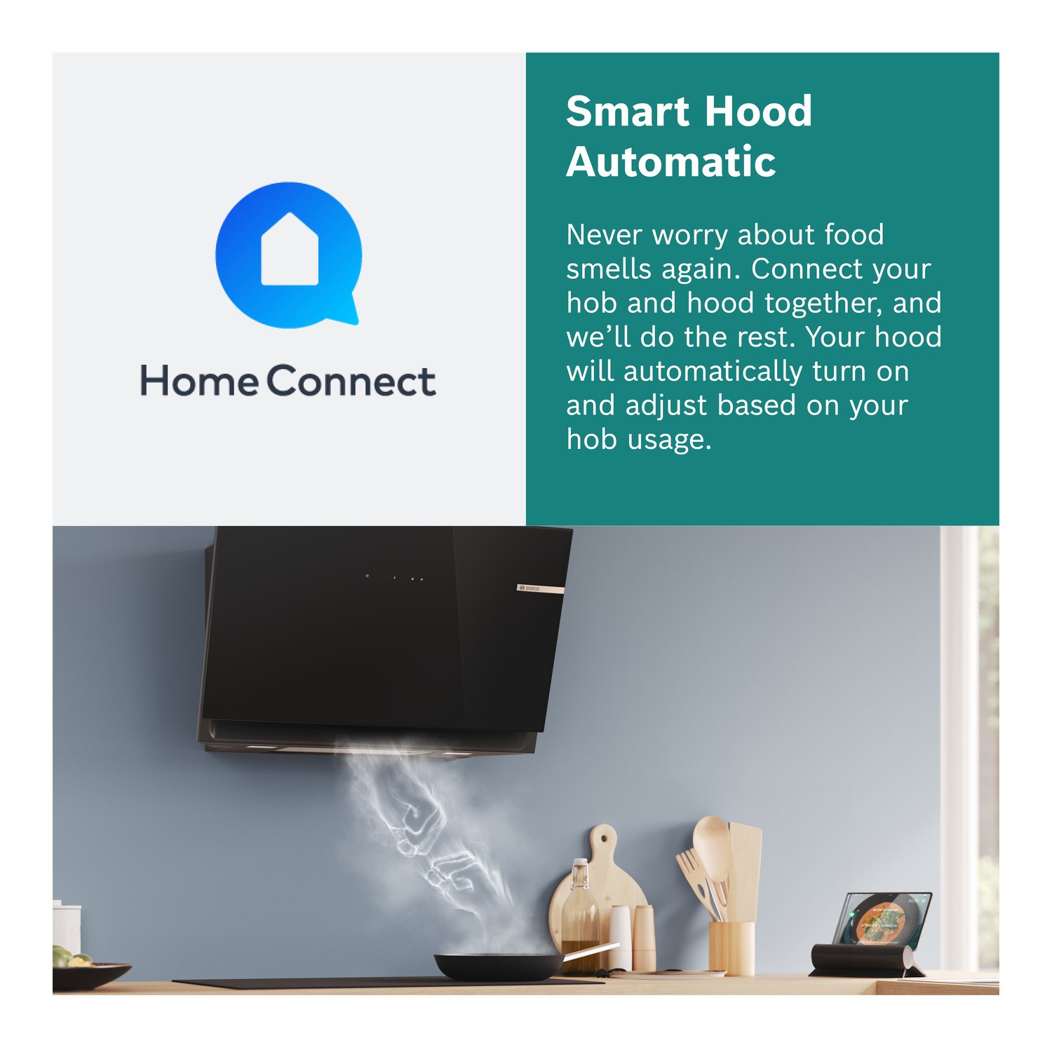 Hoods with smart connectivity simply make sense. When they detect steam or odours, they activate automatically. When you’re around the house or out and about, you can connect and control the hood using the Home Connect App. Life just got smarter.