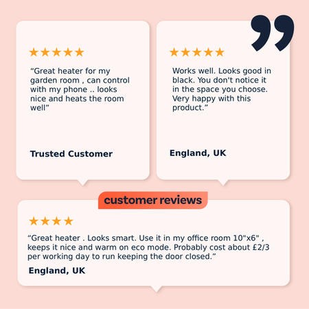 This designer black glass panel heater can be both wall-mounted or freestanding. The IP24 water-resistant rating allows it to be used in many spaces, including bathrooms. There's no pipework required, just an electricity supply, making it reliable and super easy to set up. Take control of all heater functions from anywhere, at any time, using your phone and conveniently heat your room minutes before you arrive home. Set up is a breeze, simply connect the heater to your home WiFi, download the user-friendly app on your smartphone, and away you go. The advanced energy-efficient design, weekly timer, and precise digital controls help make this device more efficient and help you save money on those energy bills.