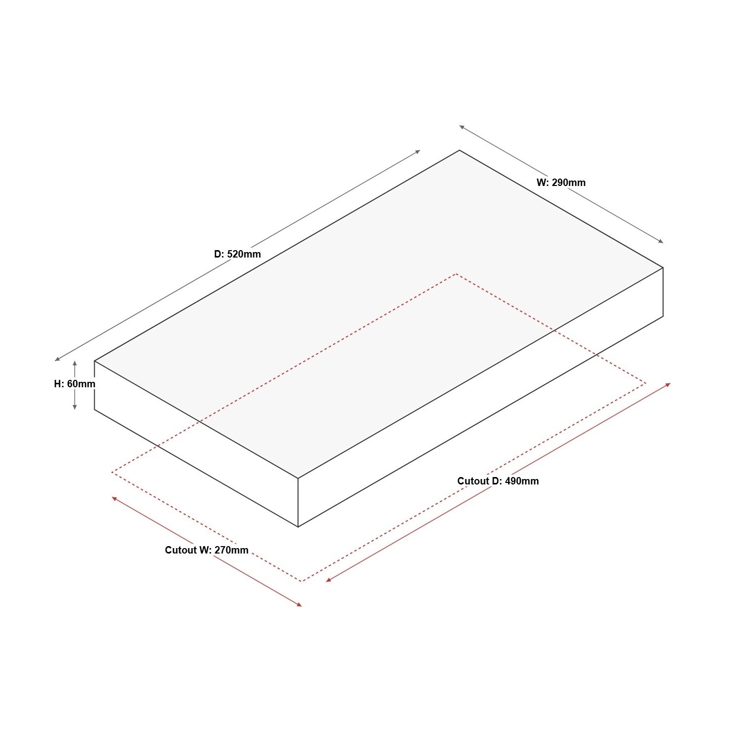 - Cut-out dimensions: W 490 x D 270mm
