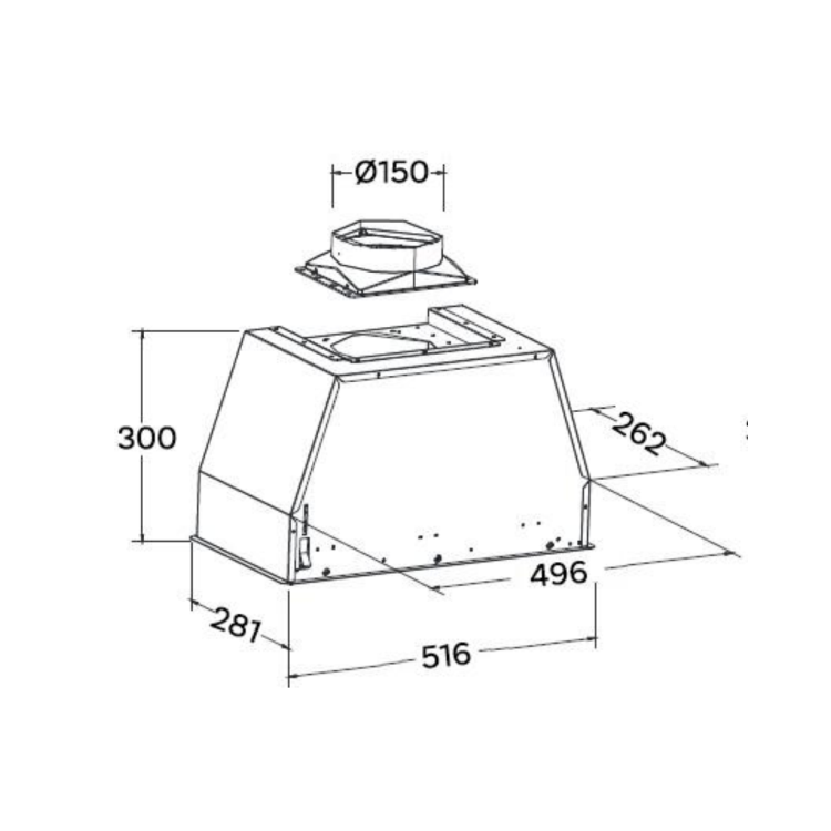- Dimensions: H 300 x W 516 x D 281 mm
