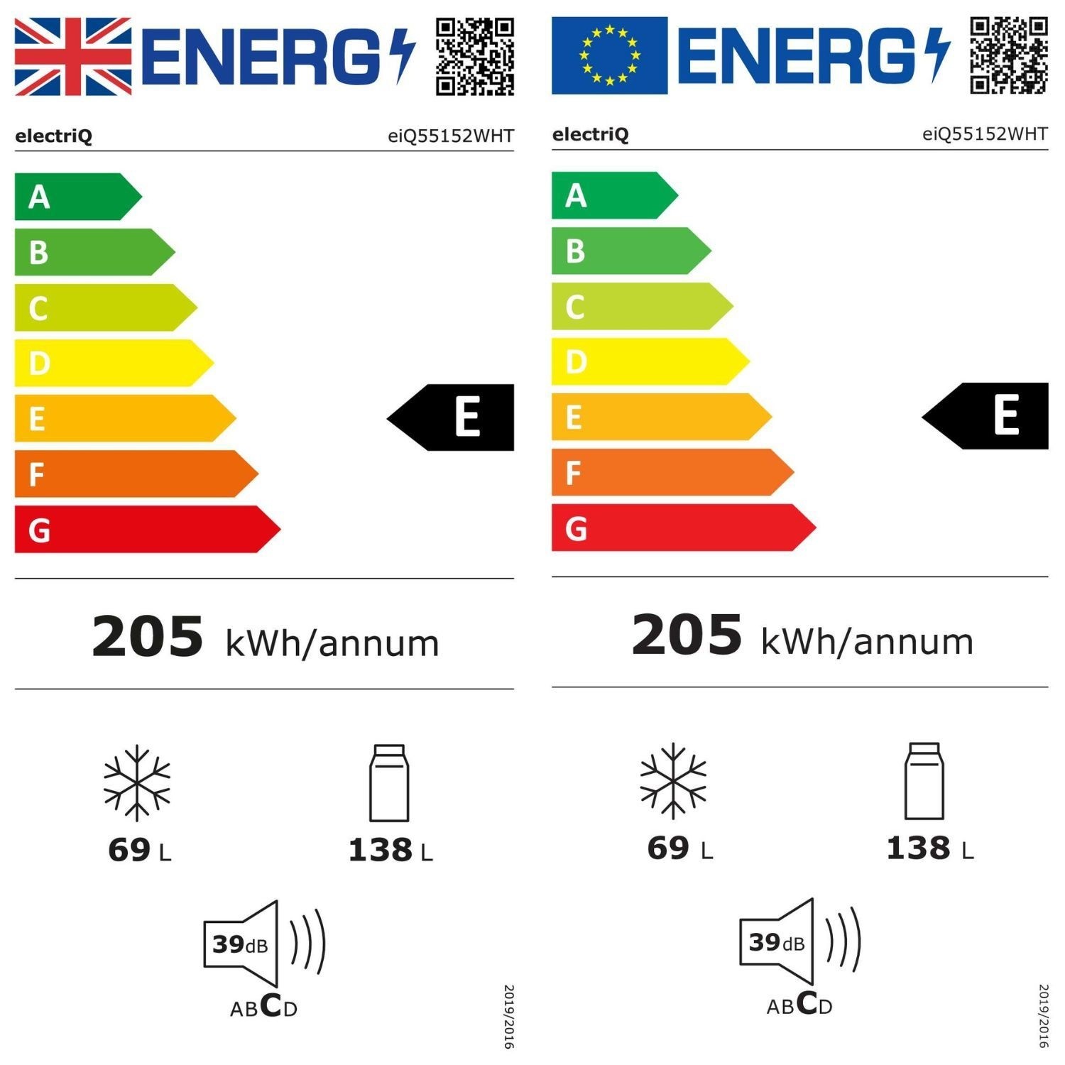 - Fridge capacity: 138L