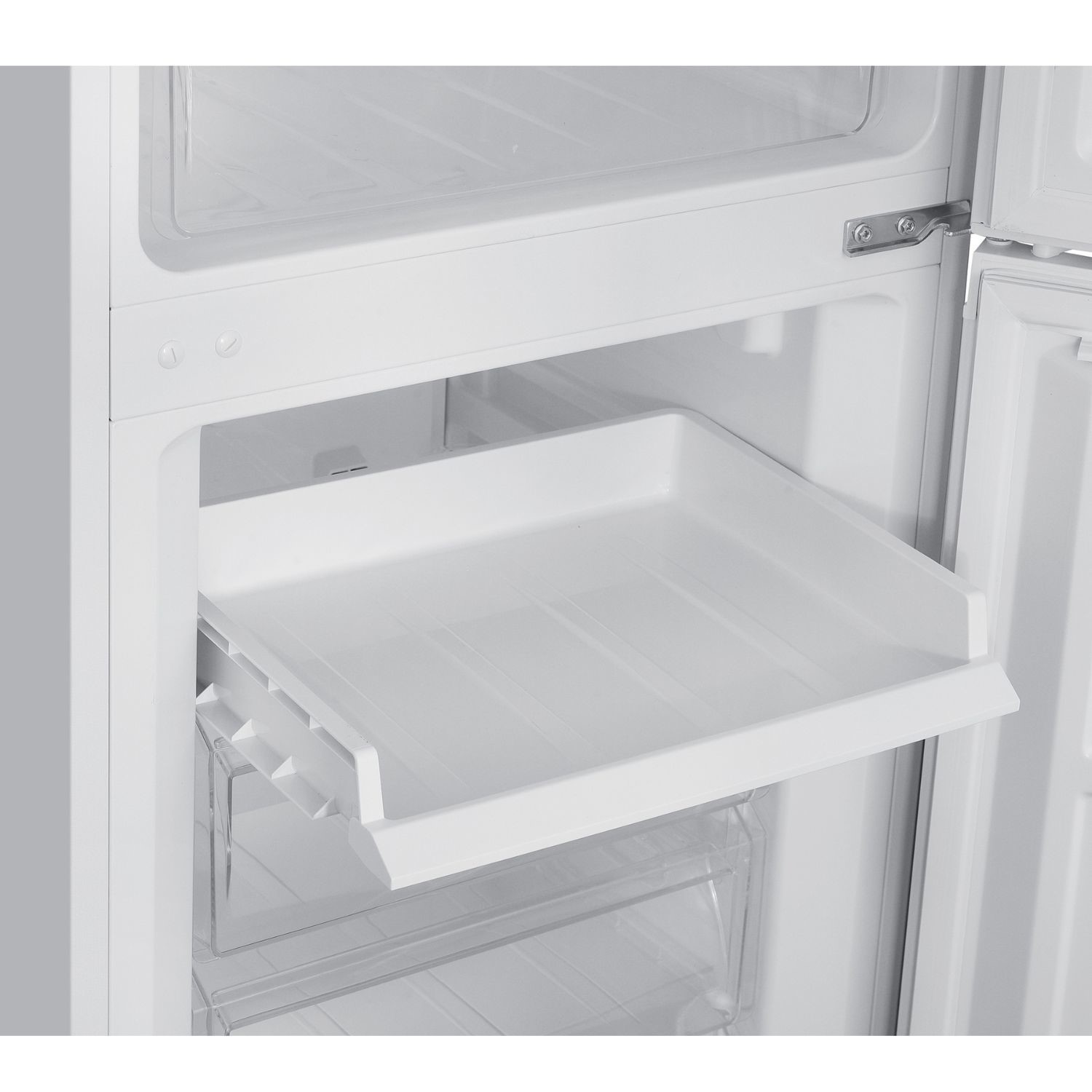 This freestanding electriQ fridge freezer features a 50/50 split with 165 L fridge and 82 L freezer capacity, offering practical storage for everyday use. The Total No Frost system keeps ice at bay, eliminating the need for defrosting, while the Multi Airflow technology ensures consistent cooling on every shelf. Inside, two fridge shelves, three freezer drawers, and one freezer shelf help keep your food neatly organised.
