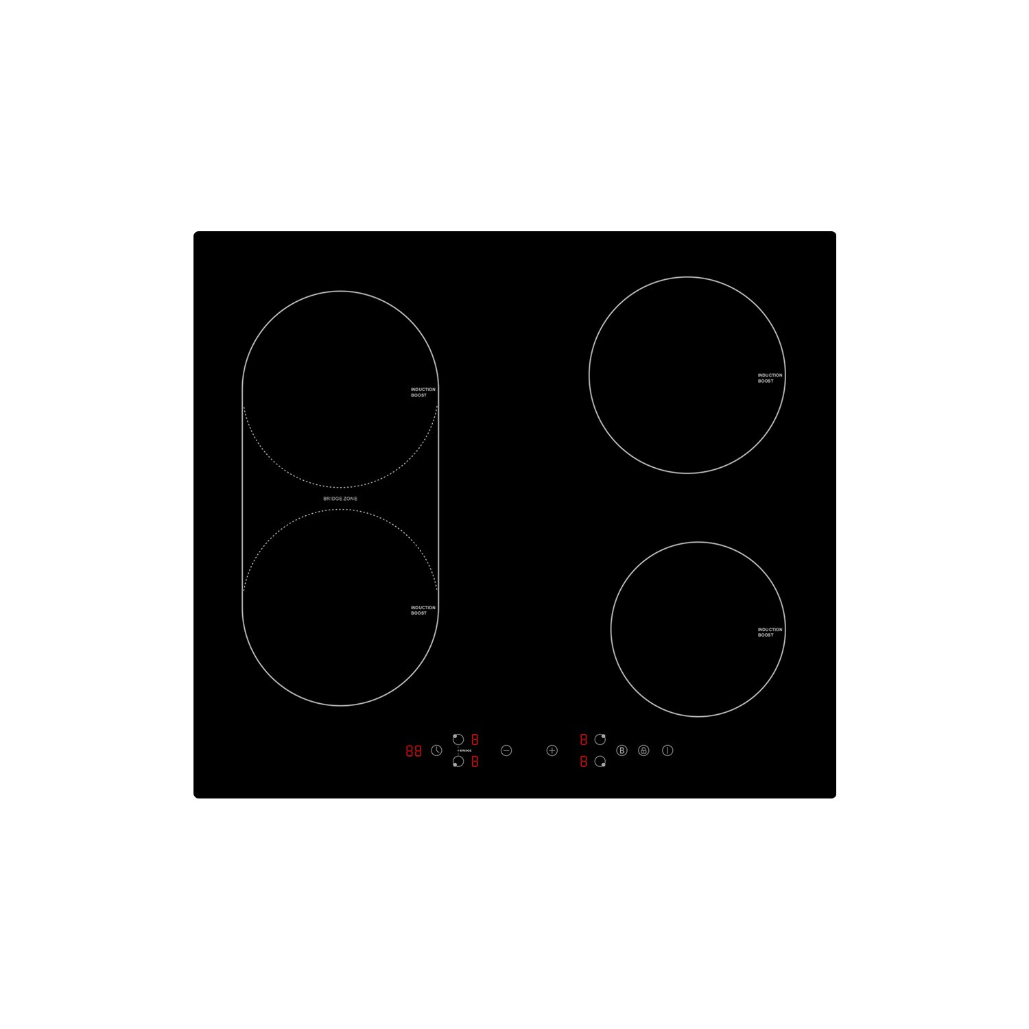 Additionally, the hob includes a bridge function, which allows you to combine two of the 180mm zones into one larger cooking area measuring approximately 380mm x 190mm—perfect for griddles or larger pans.