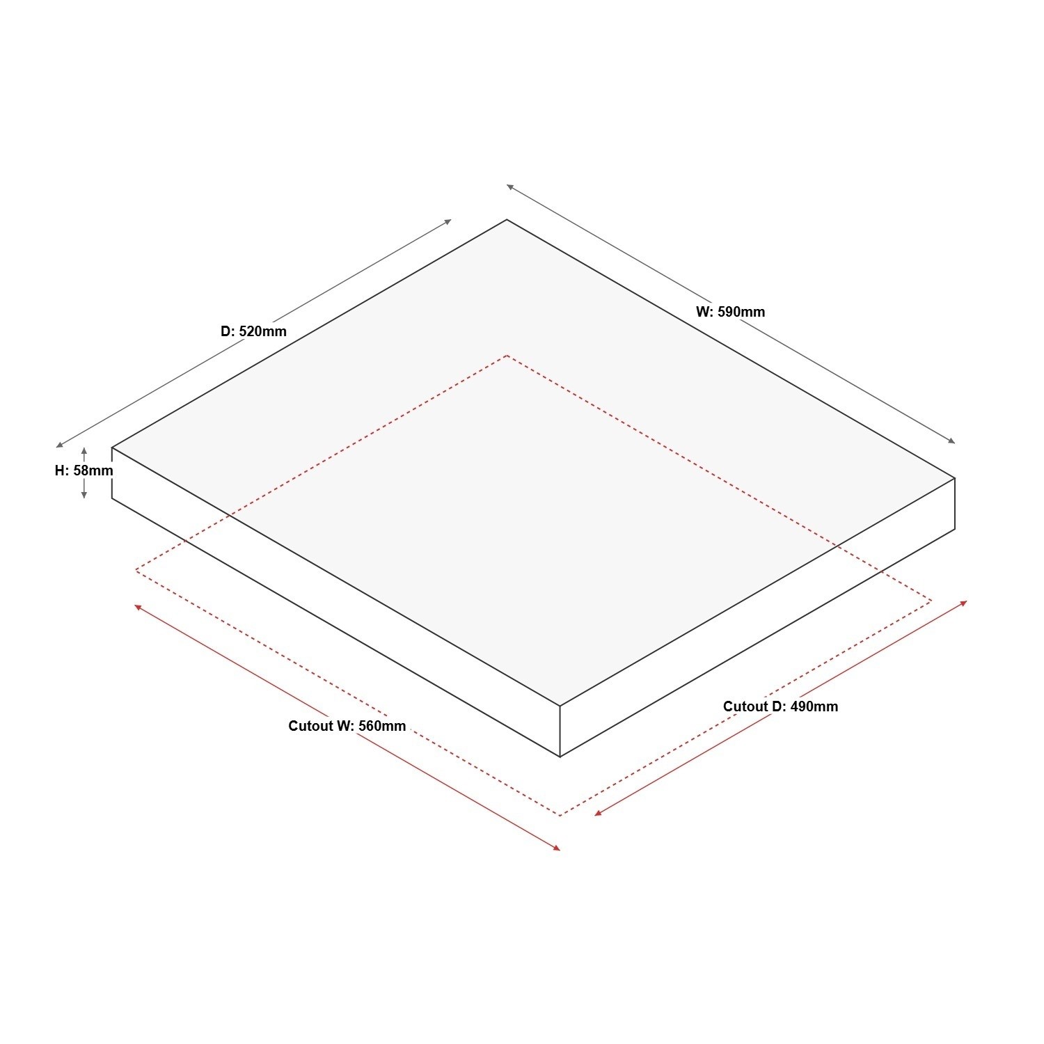 - Hob dimensions: (W)59 x (D)52 x (H)5.8 cm