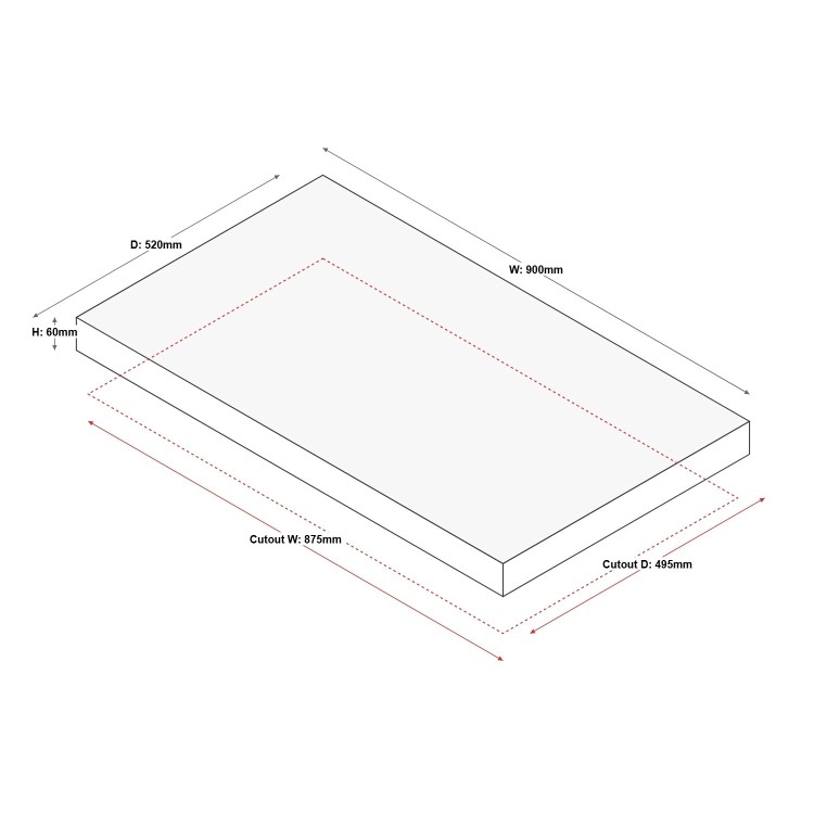 - Dimensions: H 60mm x W 900mm x D 520mm