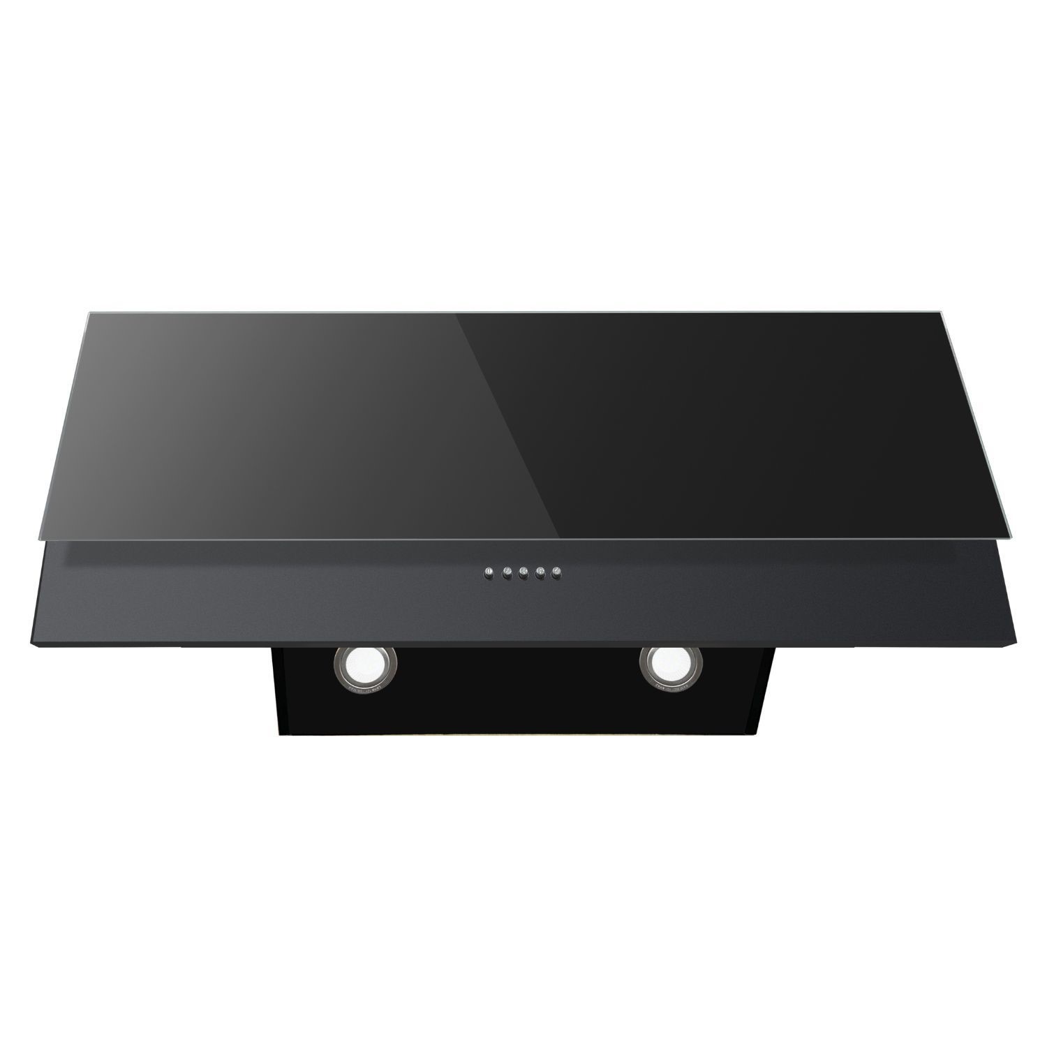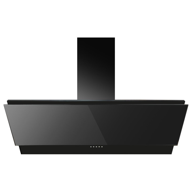 - Sleek 90cm black wall-mounted chimney hood with a modern flush design