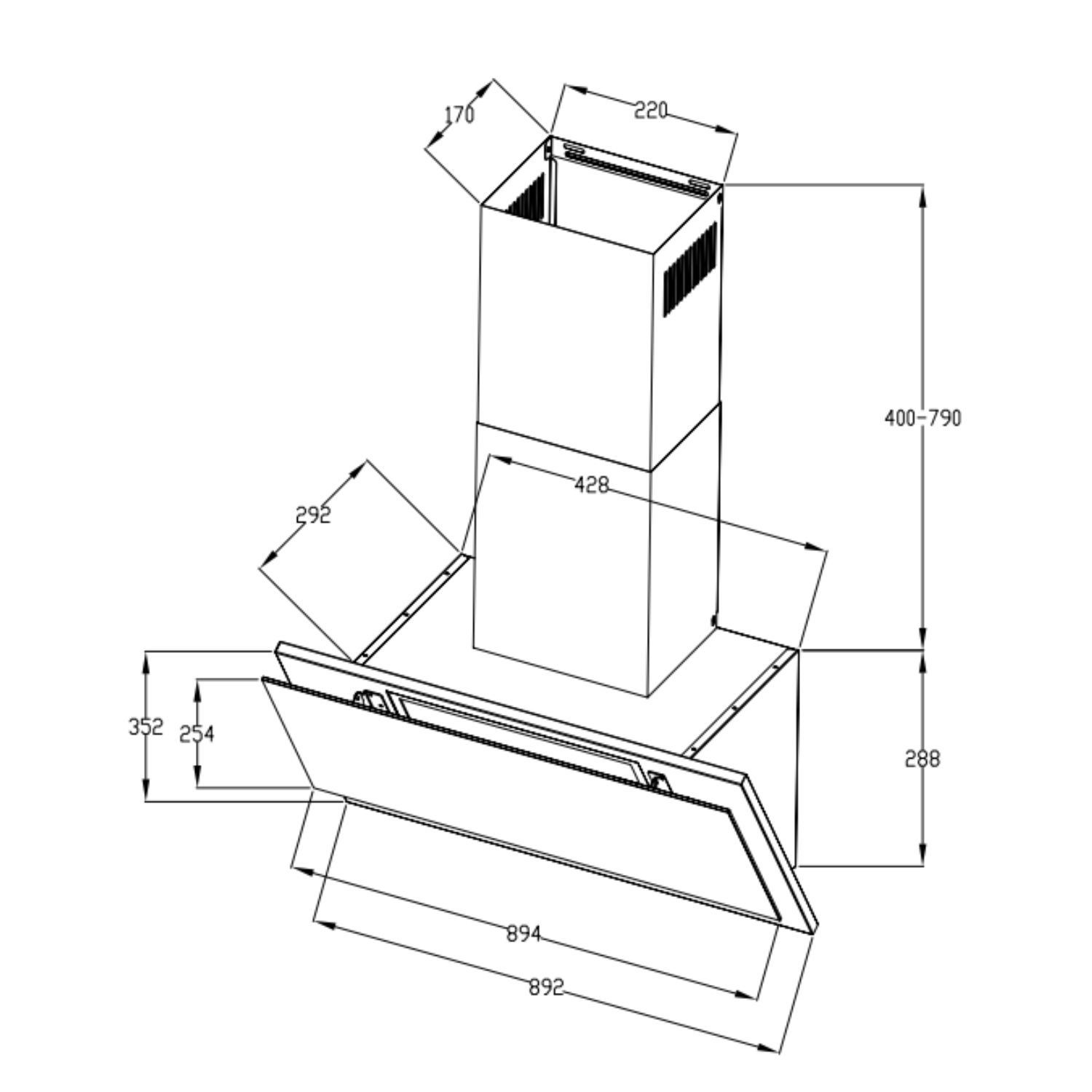 - Extendable chimney section to fit different kitchen heights