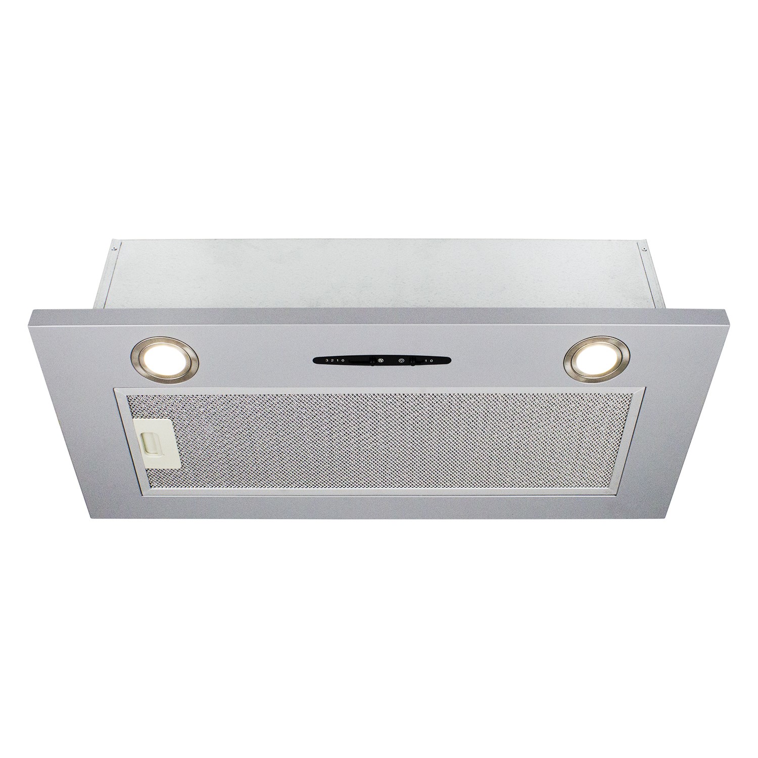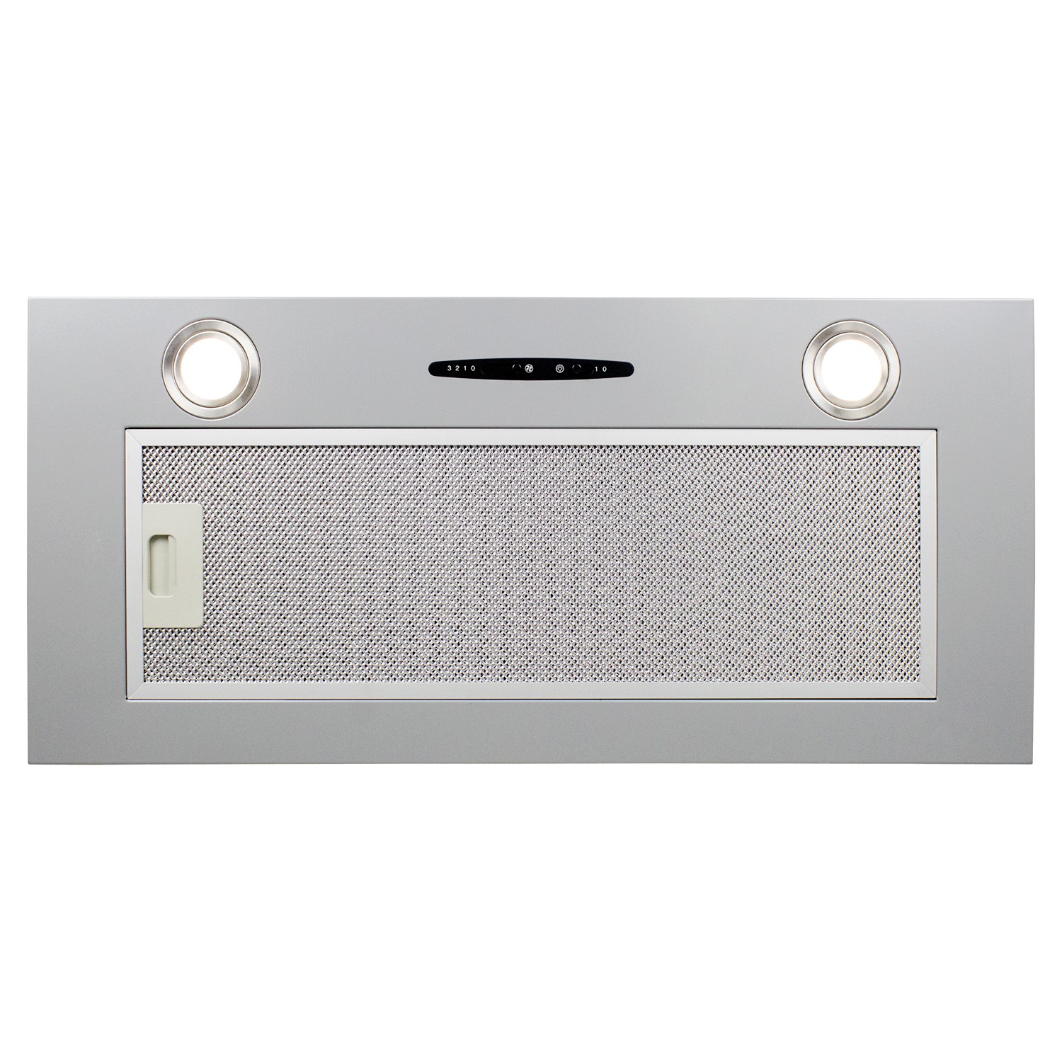 When venting out for extraction mode all the ducting will be discreetly hidden within the cupboard that the canopy hood is built in to. The hood has a high performance extraction rate, effectively removing odours and vapours from the kitchen.