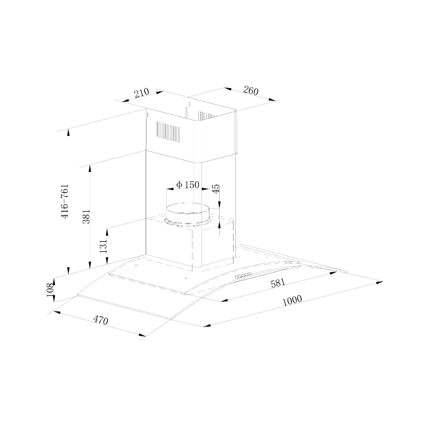 The electriQ curved glass chimney hood delivers both elegance and efficiency for your kitchen. Designed to sit neatly against your wall, its curved glass canopy adds a stylish focal point while improving air extraction efficiency. This cooker hood is designed for use over a range cooker and is suited to medium-sized kitchens. With a maximum extraction rate of 291 m³/hr, it effectively helps reduce steam and lingering cooking odours without overpowering the space.
