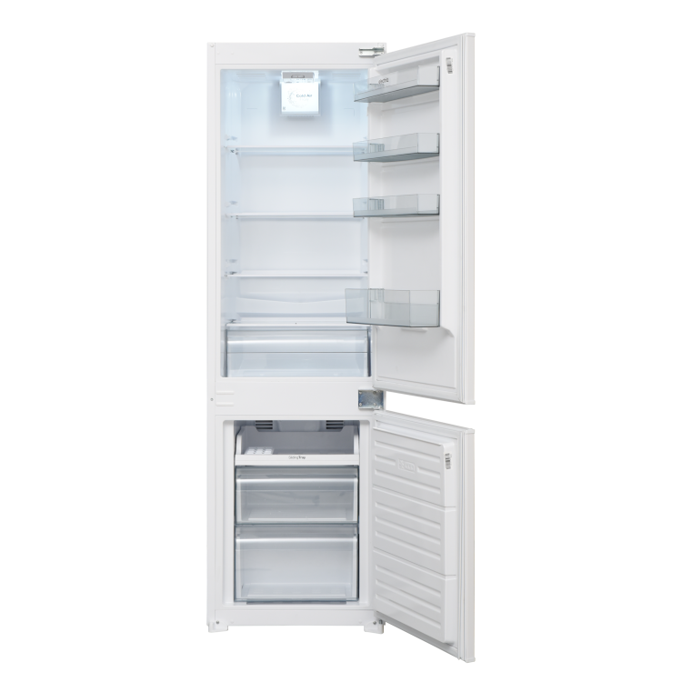 This built-in fridge freezer offers a spacious 243L of total storage, split 70/30 between fridge and freezer, making it ideal for households that use more fresh food than frozen. The fridge provides 180L of space with four shelves, a humidity-controlled crisper drawer, and four door balconies for organised storage of fresh food and everyday items. The freezer offers 63L with two drawers and one tray.
