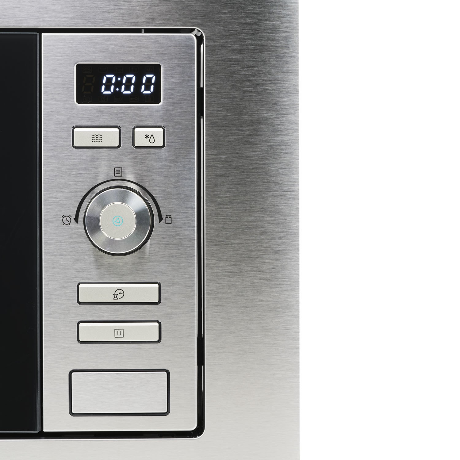 If you're looking for a microwave that will fit seamlessly into your kitchen, without taking up any vital surface space, then this electriQ microwave is the one for you. It has a shallow depth, which makes it perfect for fitting into most kitchen units. Remember to measure your space accurately as this microwave will not fit every space! There are eight pre-set programmes which give you the ideal settings to suit your dish. Whether you're cooking pasta, fish, pizza or even popcorn, this microwave has got you covered. It has a maximum power of 700W too, which is really efficient and delivers excellent and even results. With a simple dial and button control, you can choose the perfect settings and begin cooking in next to no time. The white LED display is clear and gives you all the information you need as you choose your settings and prepare to cook your dish. There's even a countdown clock as you cook, so you'll know exactly when your dish is going to be ready and you can set the table in the nick of time! Its brushed metal finish and stainless steel interior are easy to clean, and it is unbranded to seamlessly blend into any kitchen.