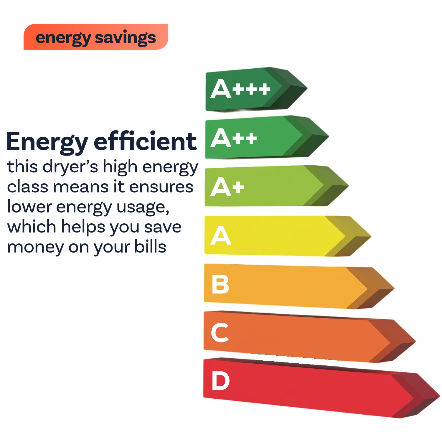 Heat pump technology delivers powerful drying with up to 50% less energy than traditional dryers. By recycling warm air, it’s kinder to your clothes and your bills. With no venting required and an A++ rating, it’s an energy-smart solution for any home.