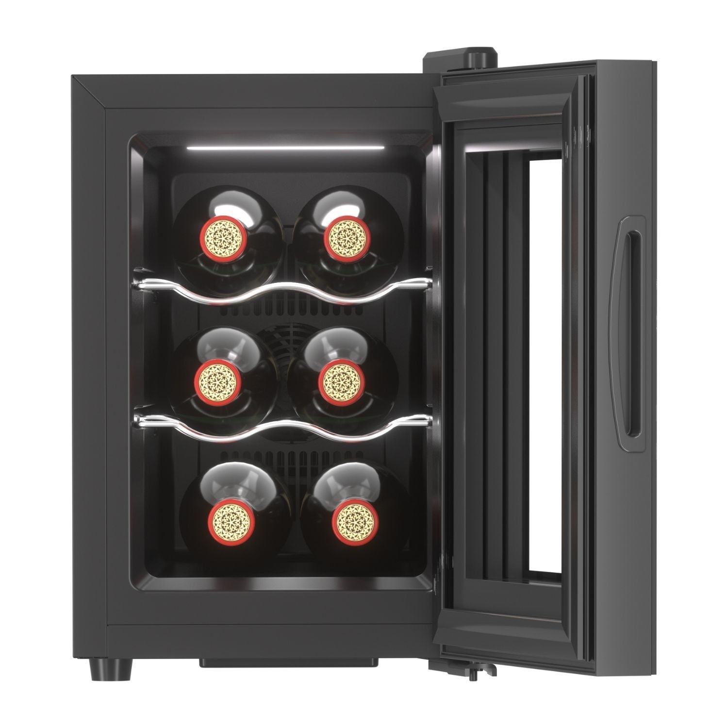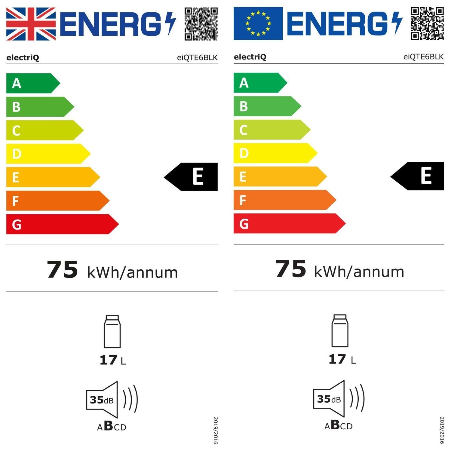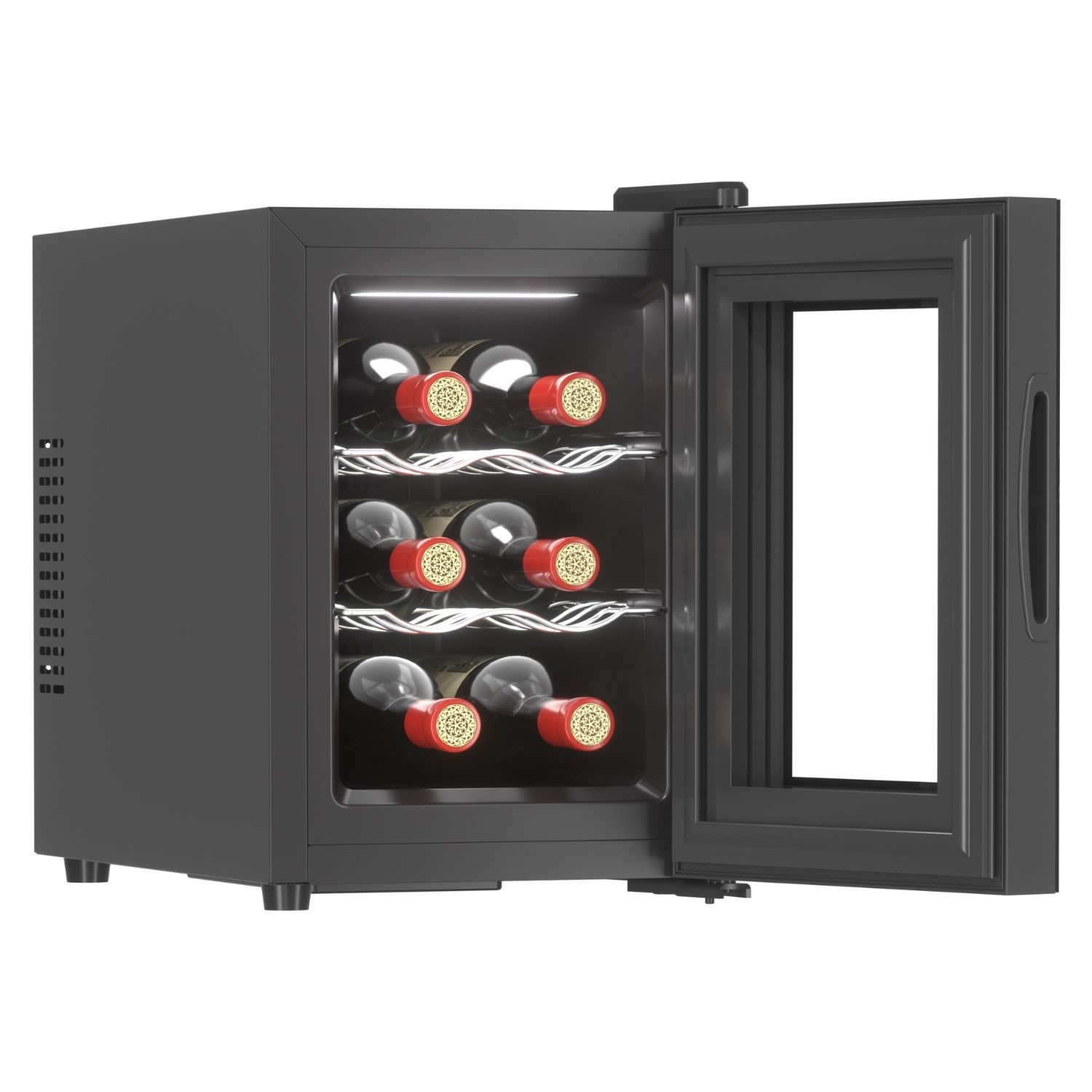 Keep your small wine collection perfectly chilled with this electriQ 6-bottle freestanding wine cooler. Its compact design makes it ideal for kitchens, offices, or apartments where space is limited. The sleek black finish and slide-out shelves offer both style and convenience, while the low operating noise of just 35 dB ensures quiet performance. This model features a dual chip thermoelectric cooling system, offering a temperature range of 5 – 18 °C, which is wider than standard thermoelectric units—comparable to compressor models. The touch control LED display allows for precise and easy temperature adjustments, adding to its modern appeal. With freestanding installation, this cooler is a great choice for anyone seeking a reliable and stylish way to store their favorite bottles.