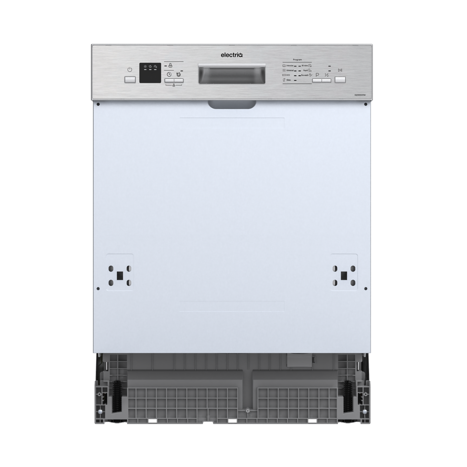 This electriQ Semi-integrated dishwasher fits neatly into your kitchen, with just its smart stainless steel control panel showing. It's designed to make washing up simple, handling all your dirty dishes with ease. With space for 13 place settings, it's perfect for busy homes, cleaning more in one go.